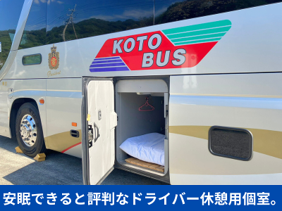 仕事内容 \2名で1.5〜2時間での交代なので負担軽減/ 【免許】免許取得(約40万円)は弊社負担! 【運転】1.5〜2時間の交代なので負担も軽減 【集中】就寝されるお客様が多く、運転に集中! 【休憩】仮眠ができるよう専用ベッドもあり 【軽減】荷物の積み下ろしもなく体の負担もなし 【 寮 】会社全額負担の寮完備! ー ⬇︎ご応募・ご質問はコチラ⬇︎ 電話:0877-73-3331(本社営業所) 担当:採用担当まで ー 【 仕 事 内 容 】 四国から東京・名古屋方面 夜行高速バスの乗務をお願いいたします。 【 1日の流れ 東京路線Ver】 ・18:00出勤 乗務前点検(バスの点検を30〜40分) ・18:40 点呼 ▶ 18:55 琴平本社出発 ・9:00 千葉ディズニーランド到着(終点です!) ・9:30〜18:00 宿舎(江戸川区)到着し、休憩開始 食事をしたり仮眠もたっぷり眠れます! ・19:00 始業点検、点呼 ・10:00 琴平着 ▶ 10:30〜11:00 解散 【 1週間の流れ】 月曜日 OFF/18:30 香川発 火曜日 9:00東京着/19:00東京発 水曜日 10:00香川着/OFF 木曜日 OFF 金曜日 OFF/18:30香川発 土曜日 8:00名古屋着/22:00名古屋発 日曜日 10:00香川着/OFF ー 【免許取得は全額負担】 未経験の方でも普通免許さえあればOK! バス運転は二種免許が必要ですが 免許取得費用(約40万円)は弊社負担です! 【安心の研修内容】 個人の進捗に合わせて研修を実施いたしますが、 概ね1〜2ヶ月を予定しています。 運転をしている際も先輩が隣についているので 安全確認してもらいながら仕事を覚えていきましょう。