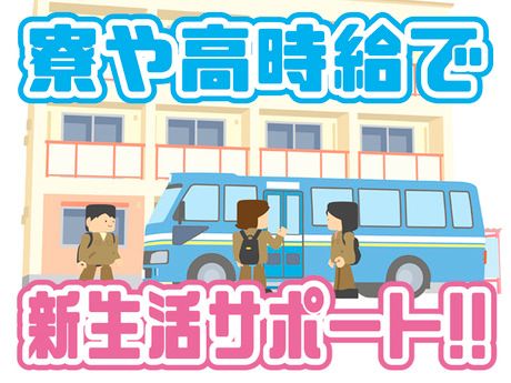 【保険制度】 雇用保険、労災保険、健康保険、厚生年金 待遇・福利厚生 【福利厚生】 < 寮・住まいサポート> 即入寮OK!1Rタイプの個室寮完備(物件により異なります) 寮費:月50,000円~70,000円 リース備品あり(TV・洗濯機・冷蔵庫・電子レンジなど)月額10,000円 駐車場あり(月額5,000円) 光熱費:自己負担(給与控除) 【福利厚生】 ・社会保険完備 ・残業手当あり ・寮完備 ・有給休暇 ・退職金制度あり ※各規定有 【受動喫煙対策】 屋内原則禁煙(喫煙スペースあり) 【工場内施設】 ・食事スペース(弁当持込可) ・食堂(1食あたり500円程度) ・自動販売機・休憩室・売店あり 【工場駐車場】 あり(無料) 【制服・備品】 私服(オフィスカジュアル)可/安全靴・帽子は自己負担 (価格:安全靴3,000円・帽子1,000円) 【赴任費について】 全額補助いたします。 遠方にお住いの方も、ぜひ一度ご相談ください! ※規定有
