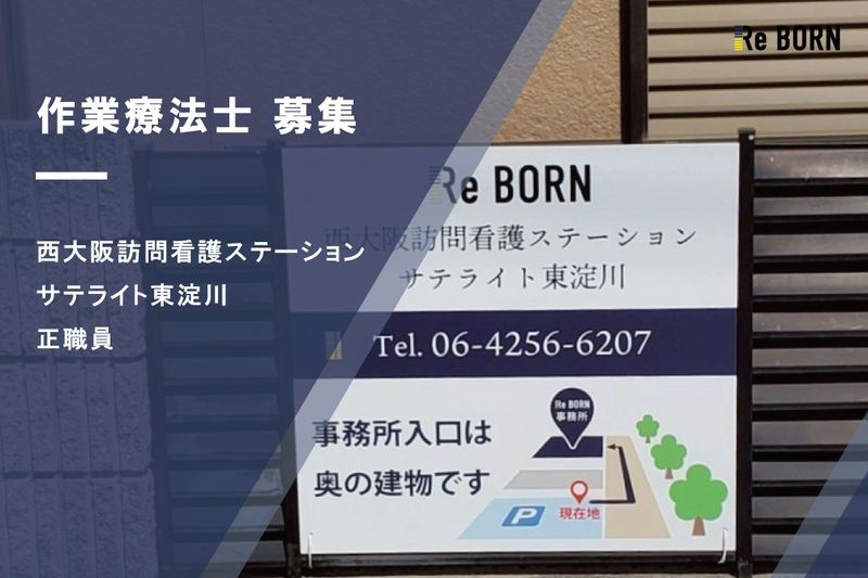 概要・業務内容 リボーングループには、幅広い経験年数・多様な経歴を持つ常勤セラピスト/看護師が130名以上在籍し、大阪府下16拠点でサービスを提供しています。 日々、自己研鑽に励み、各地域で高品質な在宅サービスを提供して頂ける方、是非お越し下さい。 私たちは「働くスタッフ」「ご利用者様」「ステークフォルダーの皆様」の3つの満足度を高める為、仕事の頑張りや成果が正当に評価される報酬制度を準備しています。 在宅での勤務経験は問いません、これまでに培われた人間力、専門性を活かして、ご活躍下さい。 ご応募頂きましたら、簡単な書類審査後、面接のご案内をさせて頂きます。(面接の前に会社説明・施設見学をご希望の方は、その旨、ご相談下さい) 皆様のご応募、心よりお待ちしております。