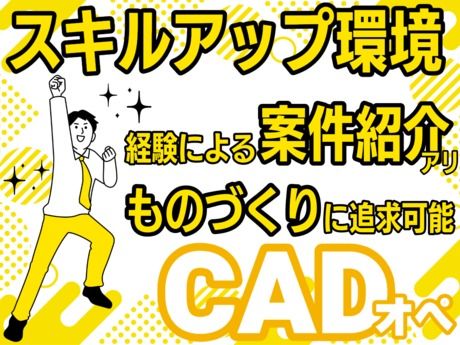 資格 何かしらのCADを使用して実務経験がある方 構造分野の図面作成経験がある方 Excel・Wordを使用して実務経験がある方 ブランクOK 主婦・主夫歓迎 ARCHITREND もしくは JW_CADを使用して実務経験がある方 Excel・Wordを使用して実務経験がある方 ※どちらかのCAD経験で大丈夫です ブランクOK 主婦・主夫歓迎 ───────────── 《こんな方にもピッタリ》 ・CADオペレーターとして現場で活躍したい ・モノづくりを追求したい ・これまでとは違う領域の案件を手掛けてみたい ・マネジメントよりプレイヤーでいたい ・サポート体制のある環境で働きたい ・都合よくライフスタイルに応じた働き方がしたい など、ひとつでも当てはまればご相談下さい! *日本語能力試験N1、N2をお持ちの方歓迎!