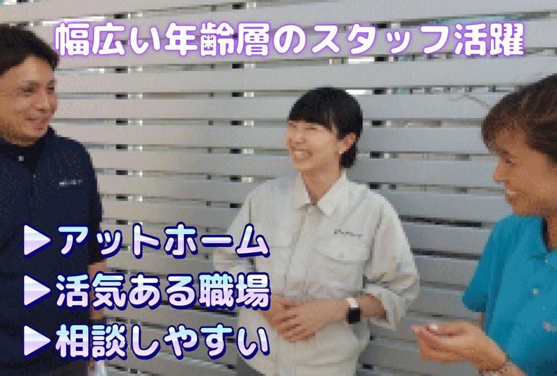 求めている人材 *未経験歓迎 *学歴・経験不問 【こんな方にはオススメ】 *モノ造りやリフォームに興味がある方 *エクステリアやDIYが好きな方 *職人・大工を目指している方 *建築、建設業や工場内作業、 製造作業、検品/梱包作業、 土木作業、現場作業員出身の方 *塗装・建築塗装・外壁塗装・ 金属塗装の実務経験者 *防水・板金塗装・塗装工事・ 左官の実務経験者 *塗装工や防水工などの職人を 目指している方 *正社員として地元で腰を据えて 長く働きたい方 *これまで現場作業のアルバイトを していた方 *ハローワークをご利用中の方