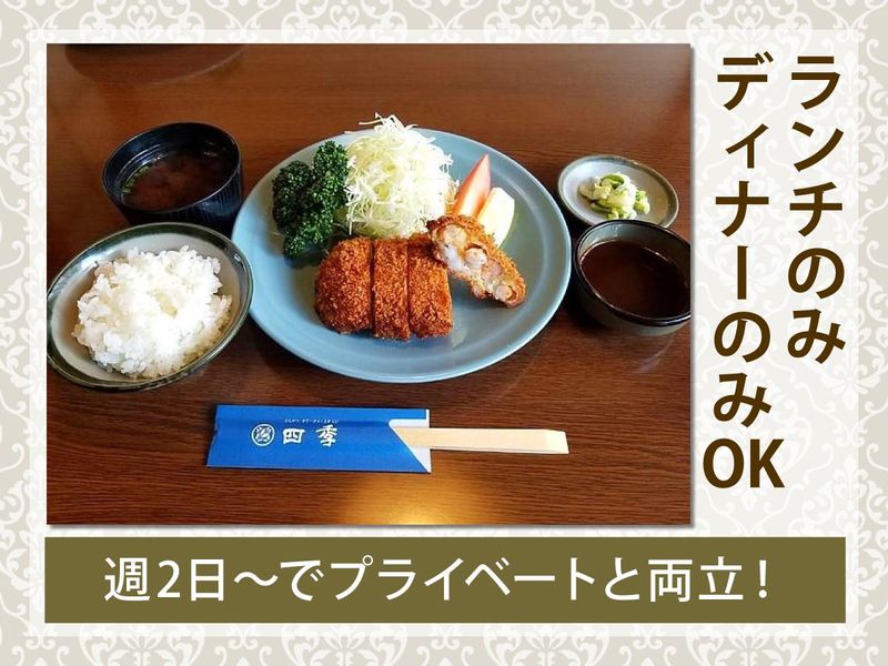 職場環境 ◆車・バイク・自転車通勤OK! ◆無料駐車場完備 【四季について】 平日のランチタイムは会社員、土日はファミリー層など、 幅広い年代のお客様にご利用頂いています!