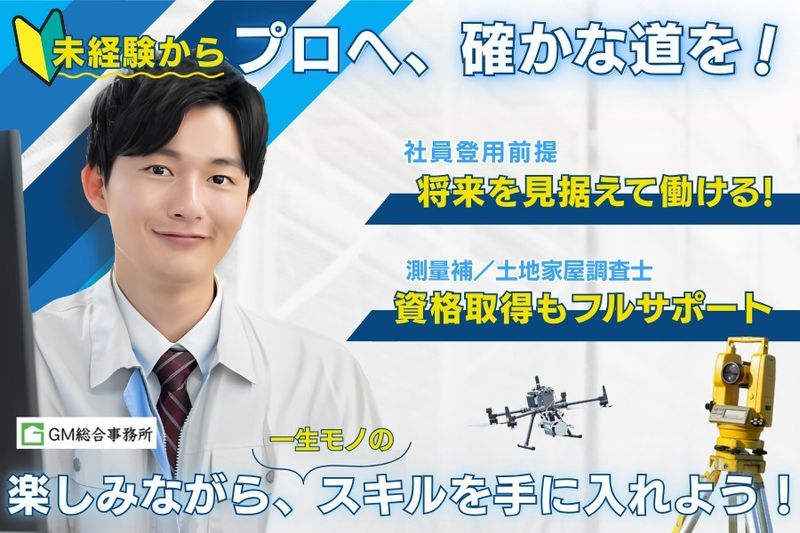 【仕事内容】 愛知県一宮市に根ざし、土地や建物などの不動産にまつわる調査・測量を一手に担ってきた「街の信頼役」である私たち【GM総合事務所】。 着実に積み重ねてきた信頼関係のもと、現在もご依頼が継続しています。より多くの依頼に応えるため、新スタッフを募集いたします。 今回はアルバイトからのスタートですが、正社員登用を前提とした採用です。意欲のある方には、将来を見据えたキャリアもご用意しています。 【当社のオススメPoint】 ・20代がメインの職場環境 ・未経験者の採用を積極的に進めています ・国家資格を取得し高収入が期待できる業種 ■具体的なお仕事内容 実は、測量の仕事はシンプルで、1週間で覚えられる内容ばかりです。もし分からないことがあっても、使う道具や作業手順をしっかりサポート!全くの未経験スタートでもすぐに馴染めます。 ・土地、建物の調査及び測量業務 ・図面の作成業務(CADを使用します) ・法務局や役所を訪問し、資料の収集作業 ・土地の所有者へのご挨拶 など 【使用するCADソフト】 ・Wingneo INFINITY (ウィングネオ インフィニティ) 上記、測量業務支援用のCADソフトを使用しています。図面作成が初めての方にもイチから丁寧に教えていきますので、どうぞご安心ください。 ■このお仕事の意義 建物を建てたり、不動産を売買したりするときには、「土地の境目はどこか」「建物の大きさは正しいか」といった情報が必要になります。 正確で信頼できる記録があって初めて、安心感のある取引や工事が進んでいきます。そのために私たちは、責任感と使命感を持ち、土地や建物の位置・形・広さを寸分たがわず図面化しています。 ================== ピタリと決める快感、ここにあります ================== 「ピタリと狙いを定める」 ──その瞬間が、この仕事の醍醐味です。 測量士の仕事は、一点を正確に捉えることの連続です。まるでFPSゲームのように、照準を合わせ、慎重に、確実に。必要なのは、集中力と観察力。現場の状況を見極め、数ミリ単位の精度で測っていく技術が求められます。 とはいえ、特別な経験や知識は必要ありません。 「なんだか面白そう」 「やってみたい」 ──そんな気持ちからのスタートで大丈夫です。 ================= 私たちは育てるために採用します! ================= 私たちは、「育てる」ことを前提に採用しています。知識も経験もないのは当たり前です。 むしろ、何も知らない状態から私たちの手で一人前に育て上げることこそが、採用の目的です。 土地や建物の測量や図面作成という専門性の高い仕事ですが、先輩とペアで動くので心配無用。 「土地家屋調査士」などの国家資格の取得も、受験費用を会社が全額サポートします。 わからないことは、現場で、図面で、その都度少しずつ覚えていけば、必ずひとり立ちできます。 =============== 積極的な社員登用制度あり! =============== 「社員登用制度あり」ではなく、社員登用実績多数が当社の強み。日々の仕事ぶりや意欲をしっかり見て、タイミングを問わず登用のチャンスがあります。実際にアルバイトから正社員になった社員も多数活躍中です。 【求人ID-NHA】