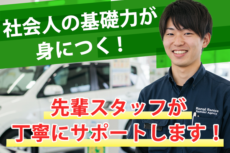 求めている人材 <必須> ・高卒以上 ・普通自動車免許(AT限定OK) <こんな方にピッタリ> ・車や運転が好きな方、接客に興味がある方 ・社会人スキルも身につけたい方 雇用期間の定めあり(1年) 契約更新の可能性 あり(原則更新)