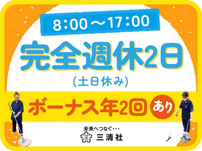 仕事内容 / *正社員で安定雇用 *ボーナス年2回あり *主婦活躍中 *年齢・経験不問 \ ////////////// 【仕事内容】 豊田市にある大手企業の自社ビルで、 ビル内全般の日常清掃、近隣現場への応援対応等、 パート従業員のフォロー等をお願いします。 ◎現場でお勤めされている方や、お客様とすれ違った際には気持ちの良い挨拶を心掛けてくださいね♪ //////////////// <正社員採用!安定した環境でお客様に貢献> 当社では、正社員として一緒に働く仲間を募集しています!65年以上の実績を誇る安定企業で、清掃・設備管理のプロフェッショナルとして活躍しませんか? お客様第一をモットーに、安心・安全・衛生的な環境を提供し、快適な空間づくりに貢献できます。長年培った技術とノウハウを活かして、お客様に快適な環境を届けませんか? //////////////// <年齢・経験不問!ライフスタイルに合わせた働き方> 年齢や経験は問いません!幅広い年代の方がご自分の生活スタイルに合わせてのびのびと働けます。「プライベートと両立させたい」「子育てがひと段落したので社会復帰したい」など、ご希望の働き方をご相談ください。急な休みにも柔軟に対応可能なので、安心して働けます。 <未経験歓迎!安心のフォロー体制!> ほとんどのスタッフが未経験からスタートしているので安心です!正社員未経験の方や働くこと自体が久しぶりの方、どんな方も大歓迎!複数人体制なので、困ったことや分からないことがあれば気軽に相談してください。お掃除のコツも身につけられ、日々の家事にも役立ちますよ! 株式会社三清社は ―― 当社は65年以上の実績を誇る、清掃・設備管理・廃棄・衛生管理のプロフェッショナル企業です。 「お客様第一」をモットーに、長年培った技術とノウハウを活かし、安心・安全・衛生的な環境を提供し続けています。 三清社では、お客様が快適に過ごせる空間を提供するために、長年の経験で培われた技術とノウハウを基に、プロフェッショナルとして、安心・安全を第一に考えたサービスを提供しています。社員一人ひとりが清掃を通じて、お客様に快適な環境を提供することを目指し、活き活きと働いています。 私たちと一緒に、お客様に快適な環境を届けませんか?