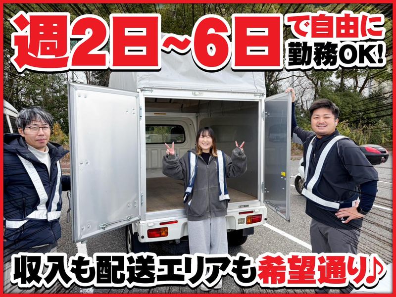 仕事内容 ✅高単価でがっつり稼げる ✅分かりにくい条件一切なし ✅最大20,800円も可能 ストレスゼロで自分の好きに働ける♪ ★ポイント★ ・加盟金や事務手数料不要 ・振込手数料当社負担 ・集荷、代引、着払い、クール便ナシ ・荷物は片手で持てるぐらいの大きさばかり ・通販商品なので軽いもの中心 ・稼働分前払いOK ・最短即日面接OK、最短即日勤務OK ・友達同士で応募OK -------------------- ★仕事内容★ 通販商品を個人のお客様にお届けする 配送ドライバーを募集します。 “アプリで地図や配送先をチェック ⇒配送⇒お客様に商品をお渡し” するだけだから、 誰でも簡単に始められます。 荷物も片手で持てるくらいの 通販商品ばかり。 どなたでも楽々運べるので、 身体への負担もありません。 ノルマなし&営業なし! ロイヤリティや代引、着払い、 クール便など配達特有の 複雑なルールなどもありません。 -------------------- ★働きやすい環境そろってます★ ・週2~6日などで勤務♪ 時間・日数・エリア等相談OK! ・勤務時間や日数の相談OK! スケジュールは自由に決められます! ・夜勤なし&長距離配送なしで 生活リズムも安定! ・「平日はお休み多め」など 自分の好きに調整して働ける♪ ★委託のメリットって?★ ・営業ナシ ・上司の顔色を伺うことナシ ・社内の人間関係で悩むこともナシ ・やったらやった分だけ稼げる ・仕事のスケジュールを自分で決められる ・もちろん休みも自分で決められまます ・その他詳しくは面接時にお伝えします!! ・面接は、説明会感覚で気軽に来てください~! -------------------- ★頑張った分だけ稼げる安心の業務委託★ 稼働日数分がまるっともらえる♪ リースの場合、 ここから毎月のリース料 3万8000円が引かれるだけ◎ ★手厚いサポート体制に自信あり★ 最初は先輩の横乗りからスタートするので、 配送の経験は不問です。 車を安全に運転出来たらOK! まずは狭めのエリアからスタート♪ 慣れてきたら先輩に横に乗ってもらって 実際に配送していき、その後独り立ち! 不安がなくなってから1人で配送を行うので、 先輩に遠慮なく何でも聞いてくださいね。 その他のことも超超超手厚くサポートします! ・黒ナンバーへの申請も代行します ・夜間や長距離の運転はありません ・ドラレコ完備で未経験でも安心 ・配送中は基本1人。ラジオや好きな音楽を 聴きながらの運転もOK♪ -------------------- 勤務地: 尼崎・大阪・西宮周辺エリア ※他エリアも相談OK ★直行直帰OK ★車・バイク通勤OK -------------------- 『皆さんの夢を叶える お手伝いをさせてください』by代表 理想の稼ぎ方や休み方、 生活スタイルは人それぞれ。 家族を優先で働きたい方もいれば、 将来独立のために ガッツリ稼ぎたい方もいます。 当社では、皆さんが希望する働き方が 実現できるようあなたらしく 働ける条件をご用意しました。 必要なのは運転免許のみ。 ぜひ当社で理想の生活を カタチにしませんか?