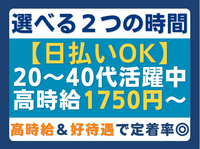 【日払いOK】選べる2つの時間!ブランク◎20~40代活躍中