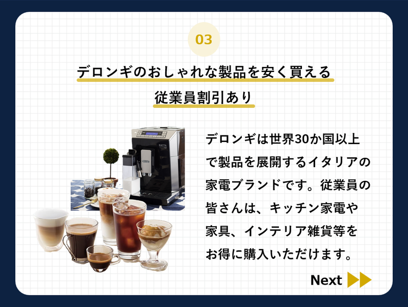 仕事内容 ★☆★☆★☆★☆★☆★☆★☆★☆★☆ 30代、40代未経験から 接客・販売に挑戦された方多数活躍中! 4月開店予定の新店舗でオープニング募集♪ ★☆★☆★☆★☆★☆★☆★☆★☆★☆ ―⭐アピールポイント⭐―――――― ✅未経験大歓迎!オープニングなので みんな一緒のスタートで安心♪ ✅週3日~OKのフルタイム勤務! ✅平日のみ勤務もOK ✅子育てに理解ある職場! 急な早退やお休みも安心◎ ✅ピアス・ネイルOK ✅制服あり! ✅車・バイク・自転車通勤OK! ✅公共交通機関利用の方は 交通費全額支給! ✅おしゃれな家具・雑貨を安く買える 従業員割引あり◎ ✅履歴書不要&オンライン面接可! まずはお気軽にご応募ください◎ ――――――――――――――――― 【✨仕事内容✨】 雑貨店のスタッフとして下記業務を お任せいたします♪ ■接客対応(商品案内など) ■レジ・電話の対応 ■売り場づくり ■商品管理 ■店内・店外清掃 ■オープン・クローズ業務 2週間ほどで基本的な流れを把握できます。 また、商品知識などは働きながら 徐々に覚えていけば大丈夫です◎ 困ったときはどんどん先輩を頼ってくださいね♪ 【✨研修について✨】 ▶まずはオリエンテーション 接客や商品の基本を学ぶ座学研修 ▶次はOJT 実際に店舗に立って、社員から 実務を習っていきます。 やり方を教わり、お手本を見て、 実践を繰り返していきましょう! ▶万全のフォローアップ体制 研修はお店のスタッフだけでなく、 別店舗の店長やマネージャーなど 経験豊富なスタッフが応援に入ります。 独り立ちまでしっかりサポートしますので、 分からないことや不安なことは 気軽に相談してくださいね◎ ::.。.: .。.: .。.: .。.::.。.: .。.: .。.: .。.::.。.: .。.: 【✨デロンギ(De'Longhi)について✨】 デロンギは世界30か国以上で製品を展開する イタリアの家電ブランドで、 全自動コーヒーマシン エスプレッソメーカー コーヒーメーカー キッチン家電などを扱っています。 特にコーヒーマシン市場では 積極的に新製品を投入し続け、 現在、世界的トップシェアを誇ります。 4月頭オープン予定の新店舗で 共にサービスを提供する仲間を募集中! 接客が好きな方や挑戦してみたい方、 商品に興味がある方、大歓迎です! ::.。.: .。.: .。.: .。.::.。.: .。.: .。.: .。.::.。.: .。.: