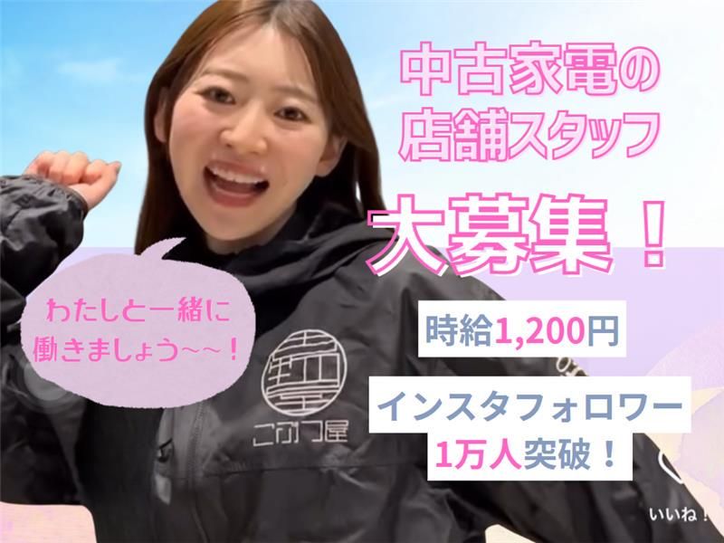 仕事内容 ⭐話題のインスタを見てみませんか❓ SNS総フォロワー1.7万人✨ ✅Instagram(検索ID):kobutsuya_komaki \\\ ✨電話応募OK✨ ///  ̄ ̄V ̄ ̄ ̄ ̄ ̄ ̄ ̄ ̄ ̄ ̄ ̄ ̄ ̄ ̄ ̄ ̄ 0568‐54‐8770 主婦・学生さんも歓迎♪ \\\ ✨アピールポイント✨ ///  ̄ ̄V ̄ ̄ ̄ ̄ ̄ ̄ ̄ ̄ ̄ ̄ ̄ ̄ ̄ ̄ ̄ ̄ ✅週3勤務より応募OK✨ ┗平日・土日祝どちらかでも働ける方歓迎! ✅扶養内勤務OK! 主婦も学生さんも扶養の壁に悩みますよね… 扶養内で働きたい方にもピッタリ☆ ✅選べる働く時間✨ 午前9~18時のフルタイムも◎ 1日4h勤務にするのもOK! ✅残業なし ✅初心者でも出来るカンタン作業♪ レジや接客などスグに覚えられる! 荷運びは荷台もあって安心です✨ ✅電化製品の社割あり✨ 店内の全商品を30%off購入♪ 家電をお得に購入できます! ✅通勤ラクラク♪車通勤可!駐車場完備! ✅交通費全額支給 (公共交通機関) ⏰ こぶつ屋 小牧店の仕事内容 ⏰  ̄ ̄ ̄ ̄ ̄ ̄ ̄ ̄ ̄ ̄ ̄ ̄ ̄ ̄ ̄ ̄ ̄ ̄ ✅中古家電専門店のリサイクルショップ運営 ✅接客・レジ対応 ✅商品清掃・店舗整理 ✅SNS投稿 ⭐未経験の方も安心 面倒見の良い先輩たちが しっかりフォローするので、 経験が浅い方も安心してください◎ もちろん経験者の方も大歓迎です! ⭐1つでも当てはまる方を大歓迎! ・じっとしているのは苦手、程よく身体を動かして働きたい! ・機械をさわるのが好き ・誰かのために行動することに喜びと感じる!