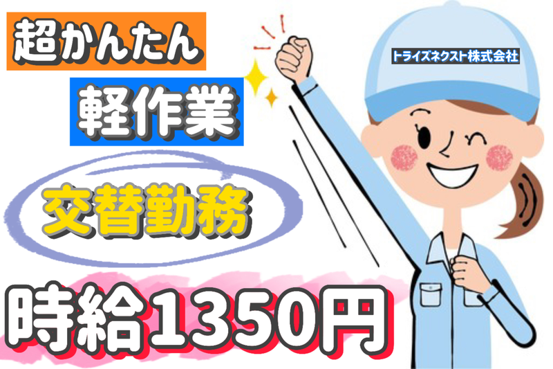 ■仕事内容 自動車外装部品の成型段取り・検査作業です。 成型機から製品【横1mほどの1㎏】が流れてきますので、 ニッパー工具を使って切り取り、目視検査をしたら、箱に詰めるだけです。 ※速度もゆっくり流れてきますのでバタバタする事はありません。 ■仕事の特徴 車通勤OK バイク通勤OK 髪型・髪色自由 友達と応募OK 即日勤務OK フルタイム歓迎 長期歓迎 シフト制 学歴不問 未経験・初心者OK ブランクOK 資格不問