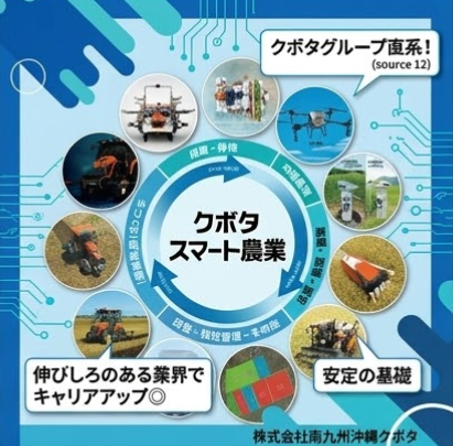 仕事内容 \\この求人の推しPOINT// ✨国内トップシェア! クボタの直系ディーラー◎ ✨安定した経営基盤と「伸びしろ」ある 農業を支える◎ ✨未経験OK! 充実の研修制度で安心スタート! ✨インセンティブ&昇給&賞与あり◎ ✨年間休日120日・育休取得実績あり ✅仕事内容  ̄ ̄ ̄ ̄ ̄ ̄ ̄ ̄ ̄ ̄ ̄ ̄ ̄ ̄ ̄ ̄ ̄ ✨農家さんの「一番の相談役」として、 クボタ農業機械の提案・販売・ メンテナンスをお任せします。 ✨具体的な仕事内容 ■農業機械の販売 └既存8割:新規2割の適度なバランス ■農業機械の修理・点検・メンテナンス ■既存顧客(農家・営農団体等)への訪問 ✨ルート営業について お客様は、長年お付き合いのある 農家さんや営農団体が中心。 まずは信頼関係を深めるルート訪問から スタートします。 慣れてきたら、ご紹介などを通じて 新しいお客様とのご縁作りも。 一歩ずつ地域に顔を広めていける、 やりがいある環境です。 ※移動は社用車(MT車)を使用します。 ✨「売って終わり」ではありません♪ ときには自ら手を動かして点検し、 農家さんの「困った」を解決する。 一歩ずつ地域に顔を広めていける、 やりがいある環境です。 機械に触れることが好きな方にとっては、 知識とスキルを活かせる場面が 多くあります。 入社時には、クボタ専用の 「つなぎ(作業着)」を貸与! 仕事着の汚れを気にせず、 プロの仕事に没頭できます◎ ✅1日の流れ(一例)  ̄ ̄ ̄ ̄ ̄ ̄ ̄ ̄ ̄ ̄ ̄ ̄ ̄ ̄ ̄ ̄ ̄ 08:30〜09:00 └出勤・朝礼 09:00〜12:00 └お客様先へ訪問・現場修理 12:00〜13:00 └お昼休憩 13:00〜16:00 └営業所での整備・提案準備 16:00〜17:00 └巡回・納品 17:15 └退勤 ✅お任せする機械のこと  ̄ ̄ ̄ ̄ ̄ ̄ ̄ ̄ ̄ ̄ ̄ ̄ ̄ ̄ ̄ ̄ ̄ *扱うのは、テレビCMなどでもお馴染みの 「クボタ」ブランド。 ◆トラクタ └土を耕し、ふかふかの畑を作ります。 ◆コンバイン └稲を刈り取り、同時にお米を選別します。 ◆田植機 └苗を等間隔でスピーディーに植える、 春の必需品です。 *これらの機械は、 1台数百万円〜1千万円以上することも ある、農家さんにとっての 「一生モノの財産」です。 *「次はもっと効率よく作業したい」 「今の畑に合う一台はどれかな?」 そんな農家さんの想いに寄り添い、 最適な機種を一緒に選んでいく。 深い信頼で結ばれるパートナーとしての やりがいがあります。 ✅未経験でも安心の研修制度  ̄ ̄ ̄ ̄ ̄ ̄ ̄ ̄ ̄ ̄ ̄ ̄ ̄ ̄ ̄ ̄ ̄ *入社後は先輩社員と一緒に お客様先を訪問しながら、 業務の流れや農業機械の知識を 丁寧に学べます。 また、入社後も定期的に農業機械の 基礎研修を実施。 最初から農業機械に詳しい人はいません。 研修制度が充実しているので、 未経験の方もしっかり成長できる環境。 中型自動車免許(8トン限定)未取得の 方は入社後に取得でき、 取得費用の一部を会社が補助します。 ✅クボタブランドで地域農業を支える  ̄ ̄ ̄ ̄ ̄ ̄ ̄ ̄ ̄ ̄ ̄ ̄ ̄ ̄ ̄ ̄ ̄ *クボタは農機分野で国内トップシェアを 誇るブランドです。 その直系ディーラーとして、 地域の農家さんから信頼される存在として 働けることは大きなやりがいです。 成績に応じたインセンティブ制度もあり、 月収平均30万円以上を目指すことも可能。 昇給・賞与(年2回)もあり、 長く働くほど収入アップが期待できます。 資格取得支援制度もあり、 スキルアップしながらキャリアを 築いていける環境です。 ✨当社について✨  ̄ ̄ ̄ ̄ ̄ ̄ ̄ ̄ ̄ ̄ ̄ ̄ ̄ ̄ ̄ ̄ ̄ ◆世界規模で「食料・水・環境」の 課題解決を目指すクボタグループの 直系ディーラーです◎ ◆宮崎・鹿児島・沖縄の3県全域で 農業機械の販売・サービスを 展開しています。 ◆南九州は日本屈指の農業大国! 米・畜産・野菜・花きなど幅広く生産 されており、私たちの役割は 今後も失われることはありません。 ◆近年ではAIやICTを応用した ≪スマート農業≫の普及や、 ドローン活用による大型化が進み、 人手不足などの課題を解決しています♪ ◆創業60年以上の安定した基盤の上で、 最先端の技術に触れる。 まだまだ伸びしろのある農業を 一緒にサポートしていきませんか?