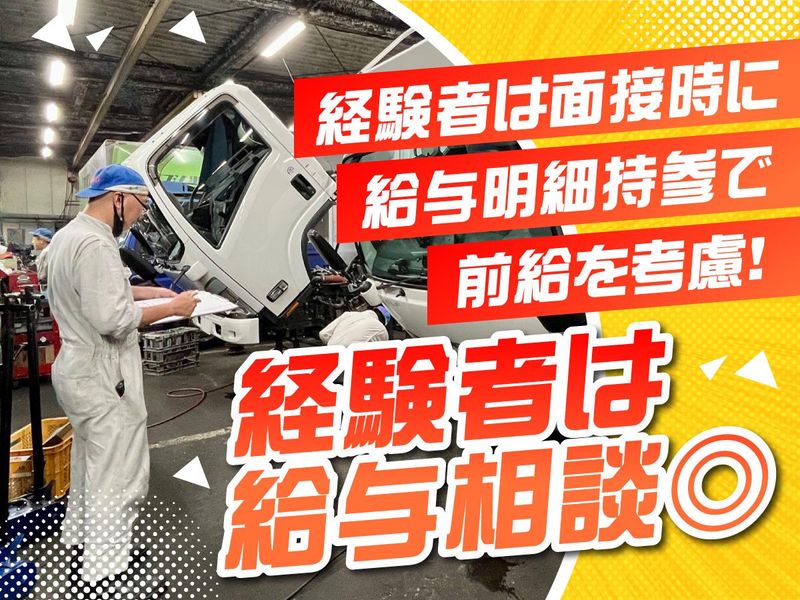 求めている人材 [以下の資格は必須です] ◆3級自動車整備士以上 ◆普通自動車運転免許(AT不可)以上 経験に応じた仕事内容をお任せします。 [以下の資格や経験をお持ちの方歓迎] ◎2級自動車整備士 ◎1級自動車整備士 ◎自動車検査員 ◎準中型自動車免許 ◎中型自動車運転免許 ◎大型自動車免許 ◎大型車両整備の経験 ◎指定整備工場やディーラーでの車両整備の経験 [以下の経験者も歓迎します] *トラック整備士、大型自動車整備士 *自動車整備士、小型自動車整備士 *自動車メンテナンス *バイク整備士、自動車鈑金塗装 など [求める方] ◇年齢不問 ◇未経験相談可能 ◇Wワーク・副業ok ◇1人で車両整備を行える方 ◇検査員資格保有者なお可 ◇定年後のセカンドキャリアをお探しの方 ◇50代、60代シニア整備士パート活躍中