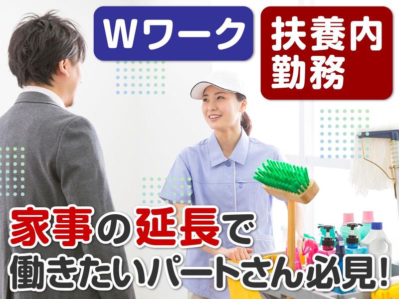 求めている人材 平日週2日・4時間働ける方! ●未経験も積極採用中! ●扶養内勤務やWワーク歓迎! ●子育てがひと段落した主婦活躍中 ●フリーター歓迎 ●中高年活躍中 (ミドル活躍中/シニア活躍中) ▼活かせる経験****** ・日常のお掃除スキル ・整理整頓が好き ・モクモク作業が好き ※経験は不問です!
