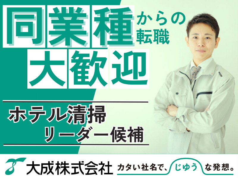 仕事内容 ✅同じ清掃でも、ここが違います!  ̄ ̄ ̄ ̄ ̄ ̄ ̄ ̄ ̄ ̄ ̄ ̄ ̄ ̄ ̄ ̄ ̄ ̄ ■夜勤なし! 8時〜17時の日勤メイン ■駅直結! 通勤ラクラク、悪天候でも安心 ■リーダーポジション ⇒あなたの経験が活かせる責任ある立場 ■ホテル清掃スキル習得 ⇒より専門性の高い技術が身につく 駅直結のきれいなホテルで、 まずは清掃業務をイチから覚えていただき、 将来的にはチームをまとめるリーダー として活躍していただくポジションです。 ■具体的には■ ⏩労務・勤怠管理 スタッフのシフト作成や 出勤調整、相談対応など ⏩清掃指導・品質管理 スタッフ指導、育成や 客室の仕上がり具合のチェックなど ⏩業務連携・報告 本社スタッフとの連絡調整や ホテル担当者との情報共有、 緊急対応時の現場指示など ✅「いきなり管理職」ではありません  ̄ ̄ ̄ ̄ ̄ ̄ ̄ ̄ ̄ ̄ ̄ ̄ ̄ ̄ ̄ ̄ ̄ ̄ 「リーダー」といっても、最初は現場でしっかりと 清掃業務を覚えていただきます。 長年働いているベテランパートさんもおり、 分からないことは何でも聞ける環境です。 まとめ役というより、“縁の下の力持ち” という感覚が近いかもしれません。 ✅まとめ役=「支え役」でもある正社員  ̄ ̄ ̄ ̄ ̄ ̄ ̄ ̄ ̄ ̄ ̄ ̄ ̄ ̄ ̄ ̄ ̄ ̄ 現場で直接清掃するスタッフを、 正社員が陰で支えます。 ベテランパートさんの力を借りつつ、 困っていることや不安を 丁寧にヒアリングしながら、 より良い現場づくりを目指します。 まとめ役というより、“縁の下の力持ち” という感覚が近いかもしれません。 ✅入社後の流れ  ̄ ̄ ̄ ̄ ̄ ̄ ̄ ̄ ̄ ̄ ̄ ̄ ̄ ̄ ̄ ̄ ̄ ̄ まずは現場業務からスタート ●共用部の清掃(ロビー、お手洗い、エスカレーター、エレベーター、宴会場フロアなど) ●客室清掃(ベッドメイク、清掃、アメニティ補充など) ※ロボット掃除機なども使って効率よく作業 ※ベテランパートさんが丁寧に教えてくれます ✅先輩スタッフの声  ̄ ̄ ̄ ̄ ̄ ̄ ̄ ̄ ̄ ̄ ̄ ̄ ̄ ̄ ̄ ̄ ̄ ̄ 前職:トリマー 「お客様の目に”直接触れない見えない部分” を支える仕事に惹かれました。 マニュアルのある仕事ですが、 どうしたらお客様に素敵な時間を過ごして いただけるかを考えるのが、私たちの仕事の醍醐味です。 そこに誇りを持っています!」 前職:オフィスビル清掃 「夜勤中心の生活から、日勤のみの仕事を希望していました。 休みも勤務時間も安定しているので家族との時間もとれるようになりました。月給25万スタートも決めてです。」 【大成株式会社について】 創業から60年以上、 清掃・警備・設備分野で 安定した事業を継続しています。 「カタい社名で、じゆうな発想。」をテーマに、 伝統を大切にしながらも、新しいアイデアを 取り入れる柔軟性を持った会社です。 <お電話でのご応募は> 053-451-0013迄!