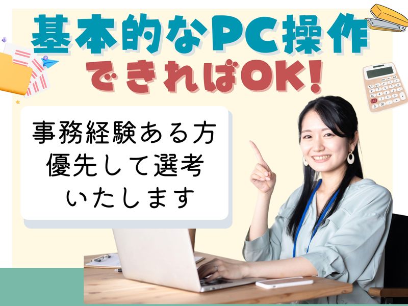 求めている人材 *基本的なPC操作のできる方 *事務経験のある方は 優先して選考いたします。 (業界未経験OK!)