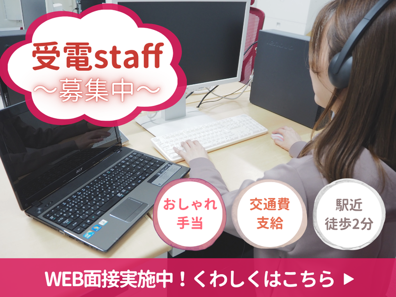 仕事内容 <11月10日入社募集中> 11月10日~3月31日までの短期のお仕事です。 状況に応じて長期への切り替えもあります♪ ◆水道の利用手続きのお仕事◆ お客様からのお電話対応とシステム入力のお仕事です。 ・水道の開始の申込み ・引越しによる水道の中止 ・名義変更や料金の問合せ など お客様からかかってくる電話に対応する受電スタッフです。 発信や営業電話は一切ございません。 ◆職場環境◆ 在籍人数:60名程 20代~50代まで幅広い年代の方がご活躍中です! ◆研修について◆ 研修期間:約4週間 座学研修から始まり、システム入力、ロープレ、OJT研修があります。 段階を踏んで学んでいけます◎ 研修後もフォロー体制がありますのでご安心ください。 はじめのうちは、リーダーが横について対応を見てくれます。 分からないことがあればすぐに質問できる環境です♪ \こんな方におすすめ/ パソコン業務が好きな方 お客様と話すことが好きな方 駅近で働きたい方 ★☆★☆★☆★☆★☆ ◆おしゃれ手当支給 美容にかかる施術代を会社が負担します♪ 申請率は90%超え! ヘアカット、カラー、ネイル、まつ毛パーマ、まつエク… (支給例) 8,000円(月給×4%) 支給上限は月給の4%! スマホで領収書をアップするだけ楽々申請◎ ◆女性活躍リーディンカンパニー認証企業 女性活躍に積極的に取り組む企業として、 「大阪市女性活躍リーディングカンパニー」の最高ランクとなる三ツ星に選ばれました! ★☆★☆★☆★☆★☆ あなたからのご応募お待ちしております♪