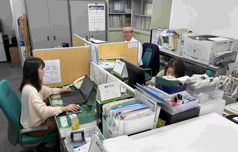 職場環境 当社の特徴は、とてもアットホームな 会社であるということ。 和気あいあいとした雰囲気で、 業務も先輩たちが丁寧にお教えします。