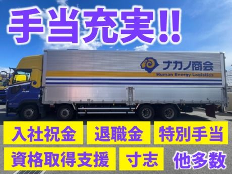 仕事内容 新規営業所オープニングスタッフ募集!20名採用予定!<4tトラックドライバー> \\8月1日オープンの新規営業所// 【ヤマトグループ】の大手物流企業 【ナカノ商会】でドライバーデビュー しませんか? 既存の営業所は 定着率がバツグンの職場です! 20代~50代のスタッフ活躍中! 【お仕事詳細】 大手通販会社の依頼で安定! 指定センターから荷物を集荷 →積込み →指定センターに配送 →積降ろし →次のセンターへ 1日3コース程のルート配送 ※繁忙時は変動 ≫≫≫≫≫≫≫≫≫≫≫≫≫≫≫≫≫≫≫≫≫≫ ◆1日の走行距離:200kmほど ◆積荷作業時間:1回30分ほど ≪≪≪≪≪≪≪≪≪≪≪≪≪≪≪≪≪≪≪≪≪≪ ++++++++++++++ 当社のおすすめポイント ++++++++++++++ *入社祝い金6万円あり! *月9日休み+有給休暇 *福利厚生充実 *転勤なし! *パレットカゴ車メイン! 手積み・手降ろしはほぼなし! パレットはハンドフォークにて積み込みなので、 フォークリフトの免許がなくてもOK *全国展開中<勤務地は希望考慮> *労務管理が整っており 休日はしっかり取れます! *勤務時間もある程度決まっているため 予定も立てやすい! +++++++ 充実の手当 +++++++ 入社祝金 資格取得支援 退職金 寸志 特別手当 …その他多数! ■会社の特徴 <超大手通販会社からの依頼多数> 従業員3000名以上を有し、 全国に37拠点を展開している当社。 会社としての安定性はバッチリです! 安定企業だからこそ実現できる 充実の待遇もあり、乗務員満足度も高め! 当営業所で活躍中のスタッフも 立ち上げから長く 勤続してくれている方ばかりです◎ ≫≫≫≫≫≫≫≫≫≫≫≫≫≫≫≫≫≫≫≫≫≫≫≫≫≫≫≫ キャリアアップ・ジョブチェンジも可! ≪≪≪≪≪≪≪≪≪≪≪≪≪≪≪≪≪≪≪≪≪≪≪≪≪≪≪≪ 事業拡大により管理職などの ポジションにも空きがあるため、 ドライバーからリーダー職などの 管理職を目指すこともできますよ◎ 年齢やキャリア、ライフステージに よってドライバーから内勤などへの ジョブチェンジも可能です! ■充実の研修制度あり!同乗研修は20時間以上! <ドライバー初心者からも安心の声多数> 法定通りの座学や添乗研修をしっかり行います! 中型免許があればドライバー経験不問! イチからしっかり教えます! ドライバーの基本から同乗研修まで 経験がある方も学びなおしになると好評◎ ■高月給&月9日休み+有休しっかりとれる! 業績は右肩上がりで、 大手物流に関わっているため安定◎ ドライバー未経験でも高月給31万円~! 無理なく働けるよう「4日勤務⇒2日休み」 などのシフト組をしています。 ≫≫≫≫≫≫≫≫≫≫≫≫≫≫≫≫≫≫≫ 有給休暇取得率は73.4%! ≪≪≪≪≪≪≪≪≪≪≪≪≪≪≪≪≪≪≪ 有給休暇が取りやすい環境です! プライベートも大切にしながら働けます! 長く働ける環境が整っています。 ■先輩インタビュー ●10tドライバー Tさん(28歳)/入社3ヶ月目 Q:前職と転職のきっかけは?  ̄ ̄ ̄ ̄ ̄ ̄ ̄ ̄ ̄ ̄ ̄ ̄ ̄ ̄ ̄ ̄ ̄ ̄ 前職は元々ドライバーをやっていました。 転職のきっかけは 前職での人間関係に悩んでいた時に 現場でナカノ商会の社員と 何度か遭遇することがあって… 思い切って悩みを話したら、 雰囲気がよさそうだなという 印象があったので、 ここに転職しようと思いました。 Q:ナカノ商会を選んだ理由は?  ̄ ̄ ̄ ̄ ̄ ̄ ̄ ̄ ̄ ̄ ̄ ̄ ̄ ̄ ̄ ̄ ̄ ̄ 前職の業務内容とほぼ相違がなく、 何より人間関係も良く働きやすそうだと 思ったからです。 給与や休日の制度が 整っていたのも自分的には刺さりました。 あと、ドライバー経験が少ない人にも おすすめポイントがあって、 研修がかなり充実してるので 運転がうまくなると思いますよ! =================== ●10tドライバー Kさん(25歳)/入社6ヶ月目 Q:転職のきっかけは?  ̄ ̄ ̄ ̄ ̄ ̄ ̄ ̄ ̄ ̄ ̄ ̄ ̄ ̄ ̄ ̄ ̄ ̄ 紹介で入社しました。 免許は、入社前に取得してました。 ドライバーやるかどうか 未定だったけど、とりあえず取得した という感じです。 Q:ナカノ商会を選んだ理由は?  ̄ ̄ ̄ ̄ ̄ ̄ ̄ ̄ ̄ ̄ ̄ ̄ ̄ ̄ ̄ ̄ ̄ ̄ 紹介されたというのが一番ですが、 自分が色々と検討してきた中で 給与がいいという事と、休みが多い というのが良かったなと思ってます。 あと、社内の雰囲気がいいし、 土日も休みが取れるのも良かったです。 土日休みの友人が多いので、 予定を合わすことができます。 =================== ●10tドライバー Aさん(29歳)/入社10ヶ月目 Q:前職と転職のきっかけは?  ̄ ̄ ̄ ̄ ̄ ̄ ̄ ̄ ̄ ̄ ̄ ̄ ̄ ̄ ̄ ̄ ̄ ̄ 前職は車の整備をやったり ドライバーもやっていました。 でもそこの会社は中型のトラックまで しか扱ってなくて、 ステップアップのために大型も扱う所を 探していました。 Q:ナカノ商会を選んだ理由は?  ̄ ̄ ̄ ̄ ̄ ̄ ̄ ̄ ̄ ̄ ̄ ̄ ̄ ̄ ̄ ̄ ̄ ̄ 業務内容的に前職と同じような感じだと いう事と、残業などの労務管理がしっかり していて、うやむやじゃないってことが 大きかったです。 働く時間も選べます。自分は日勤固定。 安定した収入