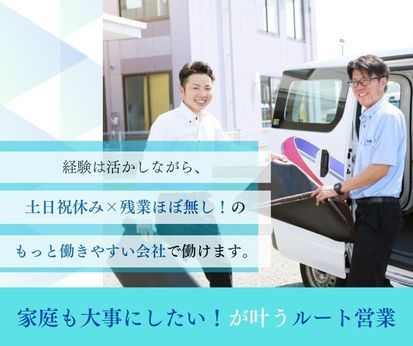 仕事内容 【仕事内容】 ◆ルート営業 担当エリアのお客さま(オフィス・店舗・工場など)を定期的に訪問し、マットやモップなど、レンタル契約商品の交換とご提案をお任せします。 ほとんどが法人のお客さまなので心配いりません! 一日の訪問軒数は、多いところだと35軒。郊外など、移動時間がかかる場所では10軒程度など、場所によってさまざまです。1日でたくさん交換する必要のある工場等は1軒で半日がかり…ということもあります。 営業車は社用車使用でワンボックスカーの普通車です。 ◆新規顧客開拓 新しくできたお店などには足を運んで、レンタル契約を目指してください。少しずつ信頼関係を深め、お客さまのためにどうすればいいのか考えましょう!成果は昇給・賞与など、目に見えるカタチとなって還ってきますよ!! ◆入社後の流れ 入社後は先輩に同行し、お客さまを引き継いでいきます(レンタルのサイクルに合わせて1ヶ月間)。お客さまの特徴から事業所までの道順、仕事の流れを覚えていきます。わからないことがあれば何でも訊いてくださいね。 一人立ちしたら、訪問時の雑談などを通して、しっかりコミュニケーションを取りましょう!「お店の入り口のマット、交換頻度を上げたら雰囲気が明るくなるかもしれません」などご提案に繋がるかもしれませんよ◎ ■先輩社員について■ 現在、65名の営業スタッフが活躍中!! 前職は販売職、工事関係…と実にさまざまです。 「家庭を大切にしたい」と当社を選んだ方先輩も! 【アピールポイント】 あなたの営業経験を生かしながら より働きやすい環境でリスタートしませんか? 「家庭を大切にしたい」と当社を選んだ先輩方も! 勤務は平日の8:30~17:00(実働7.5h)で 残業少なめ(月20h以下)です。 土日祝休み、年間休日はゆとりの114日!! 週末は自分の時間や家族の時間を過ごしましょう! 企業・飲食店・工場など、法人のお客様のもとへ 玄関マットなどの交換に伺うお仕事です。 製品をよくご存じのお客様も多く 詳しい説明を求められることもほとんどないから 業界未経験の方も焦る必要はありません。 徐々にキャリアアップを目指していけますよ! ☆未経験者可 ☆職種・業種・社会人未経験、第二新卒、フリーター歓迎! 就業ブランクや学歴不問! 【給与】 211,400円~258,070円(a+b)+各種手当 基本給(a)186,900円~228,170円 固定残業代(b)24,500円~29,900円 ≪月収例≫ 33歳既婚・世帯主、扶養:配偶者・子2人 入社時293,390円+通勤手当 1年目 299,980円+通勤手当 2年目 306,470円+通勤手当 3年目 333,120円+通勤手当 ※3年目で一般から役職(主任)へ昇進 求人番号 8309