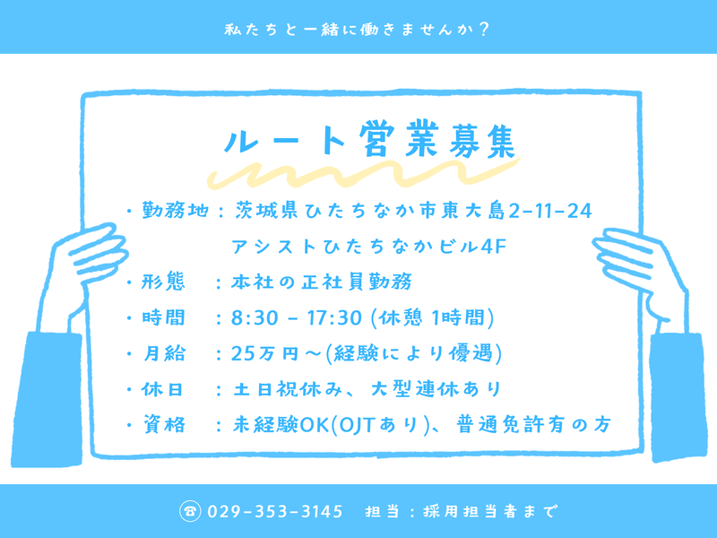 求めている人材 ◆未経験OK、初心者OK ◆普通自動車運転免許(AT限定可)お持ちの方 ◆PCでの文字入力に抵抗がない方(関数は使えなくてもOK)