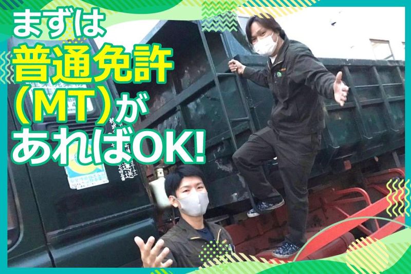 求めている人材 資格を活かしたい方も、 未経験から資格を取得し手に職をつけたい方も大歓迎です! 実際に今いるスタッフは 前職が介護士、整備士 営業、飲食店のウェイターなど様々! 異業種からの転職も大歓迎です◎ 資格はない方は当社の資格取得制度を利用できますのでご安心ください。 フリーターも大歓迎! 正社員登用(直近2年間13名)の実績もあります。 最短半年で正社員への切り替えもOK! 【必須資格】 普通運転免許(MT) <こんな方は歓迎!> 車両系建設機械(整地・運搬・積込)の経験がある方 大型特殊免許をお持ちの方 【資格のない方は当社の資格取得制度を利用できますのでご安心ください】 ※普通自動車免許(MT)をお持ちであれば、 大型特殊免許は4日・車両系建設機械は3日で取得できます。 未経験大歓迎 経験者歓迎 主婦歓迎・主夫歓迎 フリーター歓迎 学歴経験不問 ブランクある方歓迎