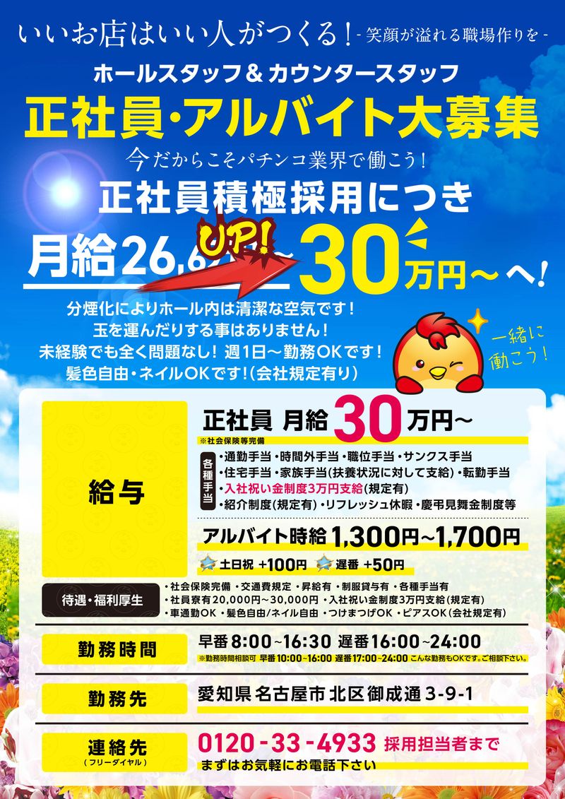 求めている人材 未経験可/Wワーク可/学生活躍中 〇ラッキー1番 上飯田店 パチンコ店ホール・カウンタースタッフ アルバイトパート募集〇 学生が多く活躍中! 若い年代のスタッフが多いので、 分からない事を遠慮せず聞きやすい環境ですよ。 今いるスタッフのほとんどが未経験スタートなのでご安心くださいね! 難しいお仕事はないので、1~2か月もあれば 大体のことは覚えられますよ! 土日の遅番だと、時給が1450円で、スキマ時間にがっつり稼げます!