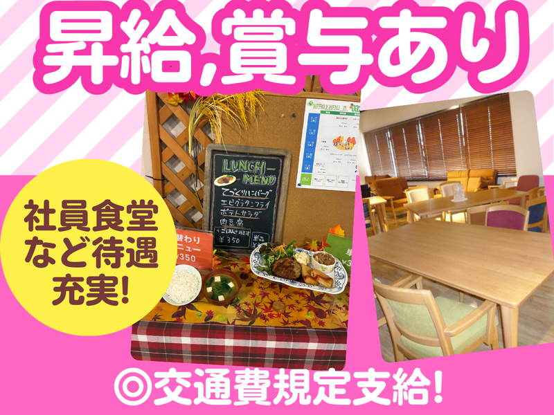 【保険制度】 雇用保険、労災保険、健康保険、厚生年金 待遇・福利厚生 【福利厚生】 ◆昇給 ◆賞与 ◆車通勤OK(駐車場あり) ◆交通費規定支給(月4万5000円迄) ◆社会保険完備 ◆有給休暇 ◆正社員登用あり ◆社員食堂あり(1食300円~500円程度で食べられます) ◆制服貸与
