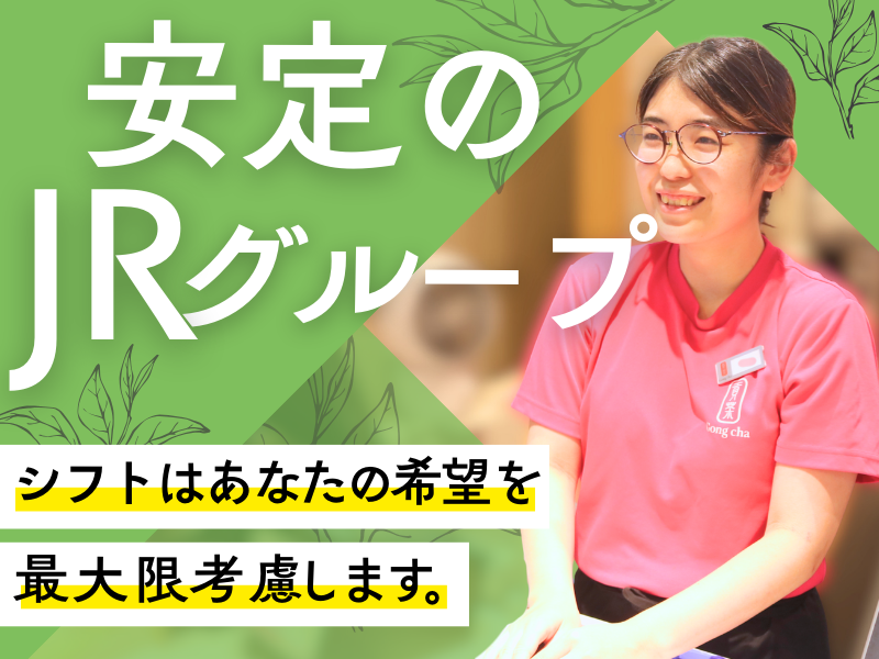 仕事内容 ・:+*・:+*・:+*・:+*・ カフェ巡りが好きな方注目! 『JR東海グループ』で好きを仕事に! ・:+*・:+*・:+*・:+*・ \「未経験」⇒「キャリアアップ」が叶う/ ◇研修・キャリアサポート充実! ◇飲食なのに残業少なめ!月平均20時間! ◇買い物にも便利!商業施設内のお店 ◇有給取得がしやすい!年1回3連休も! ◇シフトは希望を最大限考慮! ◇20代・30代・40代活躍中! 【仕事内容】 台湾ティーが大人気の「ゴンチャ」 ららぽーと沼津店で商品提供や接客・ マネジメント業務をお任せします。 【具体的には】 ・店舗での接客、販売 ・スタッフの教育・指導 ・シフト管理 ・店長のサポート ・業務改善提案や運営戦略の策定 ・マネジメントなどの業務 (月次報告、売上分析、在庫管理など) ※厨房の製造業務などは行いません。 「カフェ勤務の経験ないけど、大丈夫かな」 そんな方もご安心ください! 先輩スタッフが丁寧に指導! きっとすぐに覚えられますよ! <<未経験スタートでも安心の研修内容>> 入社後は基礎知識~実践的なスキルを 身に付けます! ・入社時研修 ・店舗一般研修 ▼ その後もキャリアアップを見据えた 研修でスキルアップ! ・ハラスメント研修 ・コミュニケーション研修 ・評価者研修 教える側の立場になった時も、 自信を持って後輩をサポート できるようになりますよ! =============== 飲食店って大変…? そんなイメージを覆します! =============== 『JR東海グループ』ならでは! 飲食業界でも安心して長く働ける 職場環境がここにあります! ★残業は月平均20時間と少なめ!  ̄ ̄ ̄ ̄ ̄ ̄ ̄ ̄ ̄ ̄ ̄ ̄ ̄ ̄ ̄ ̄ だから、趣味の時間も、友達との時間も、 家族との時間も、全部大切にできるんです! シフトはあなたの希望を最大限考慮! 終電時間などにも合わせてシフトを組むこと が可能です!お休みも年休115日+有給で、 ワークライフバランスも◎ 充実したお休みを過ごしてこそ、 お仕事も頑張れますもんね♪ ★『JR東海グループ』の一員だから、 安定感は抜群!  ̄ ̄ ̄ ̄ ̄ ̄ ̄ ̄ ̄ ̄ ̄ ̄ ̄ ̄ ̄ ̄ ̄ 私たちは『JR東海グループ』の一員として、 約50店舗のカフェやベーカリーを 展開しています。安定した基盤のもとで、 安心して長く働ける環境です。 「JRグループにのお店に就職したと 伝えたら、家族が喜んでくれた!」と 現役スタッフからも嬉しい声を 頂いています! ★明確なキャリアプランで将来も安心!  ̄ ̄ ̄ ̄ ̄ ̄ ̄ ̄ ̄ ̄ ̄ ̄ ̄ ̄ ̄ ̄ ̄ ̄ あなたの希望に応じたキャリアプランを ご用意!充実した研修制度で、 常に成長をサポートします。 ▼例えばこんな未来が待っているかも!▼ 1年目:営業係(レジ接客)からスタート 笑顔で販売!お客様とのふれあいを楽しむ! ▼ 5年目:営業主任 後輩の指導や育成も担当!頼れる先輩に! ▼ 9年目:店長 店長としてお店を引っ張る! お店づくりに挑戦! ▼ 15年目:総括店長 ▼ エリア統括店長へとステップアップ 複数店舗を管理! 「目標があると頑張れる!」という あなたにピッタリ! 5年、10年後のキャリアを見据えた 選択肢が豊富にあります! ================= <ゴンチャ ららぽーと沼津店> 今、メディアで話題の台湾発の アジアンティーカフェ。 現在世界で約2,000店舗を 展開しています!選び抜かれた “茶葉”を使用し、他では絶対に 味わえない高級台湾ティーを、 お客様のご要望に応じて自由に カスタマイズした一杯をご用意いたします。 座席数は8席あり、ファミリーや 友人同士、カップルなど幅広い 年代のお客様にお立ちより頂いて います。 ================= ジェイアール東海フードサービスで 働くってどんなイメージ…? https://www.youtube.com/watch?v=P_MKO7FB41I ▲こちら動画で職場の魅力をCheck✅ 気になるキャリアステップは… https://x.gd/JRJBr ▲こちらからあなたの未来をCheck✅