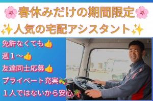 配送アシスタント(春休み短期)/トラックの横乗り/運転無し