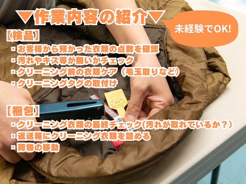 衣類クリーニングの検品・梱包、軽作業