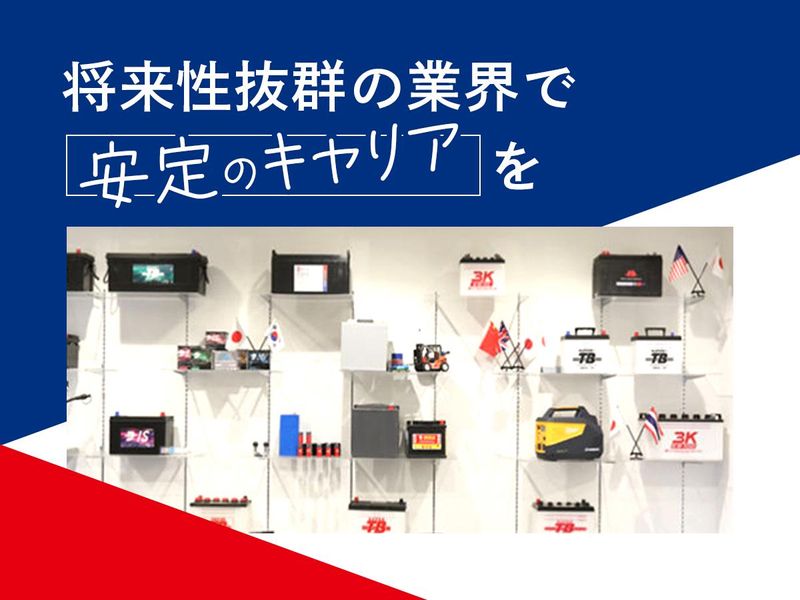 仕事内容 【岐阜バッテリー販売について】 自動車や物流機器など、様々な業界で使われるあらゆるバッテリーを扱う当社。 大手企業とも多数取引し、特にフォークリフト用バッテリーでは業界トップクラスの実績を誇ります。 ==POINT== あなたの営業経験を活かして、やりがいも働きやすさもアップデートできる環境が整っています! ■将来性バツグンの成長業界で長期的に活躍  ̄ ̄ ̄ ̄ ̄ ̄ ̄ ̄ ̄ ̄ ̄ ̄ ̄ ̄ ̄ ̄ ̄ ̄ ̄ ̄ バッテリー市場は今、鉛蓄電池からリチウム電池へと急速にシフトしており、時代変化に応じて形を変えながらも需要が高まっています。 昔ながらの鉛電池から、リチウム電池などの新しい電池にどんどんシフトしており、お客様からの問い合わせや新しい案件も増加中! 車も電力も社会の仕組みも、電気で動く時代。 電動自動車や再生可能エネルギー、工場の自動化など、様々な分野で必要とされる製品だからこそ、将来性も抜群です! ー ■“提案型”の営業スタイル  ̄ ̄ ̄ ̄ ̄ ̄ ̄ ̄ ̄ ̄ ̄ ̄ 当社の営業は、ただ製品を売るだけではありません。 商社でありながら、海外メーカーのバッテリーをお客様のニーズに合わせてカスタマイズし、オーダーメイドにも対応可能! 試作や導入を通して、現場の状況に合わせた最適な提案ができるのも当社ならではの強みです。 \独自の提案力が武器!/ 世界5カ国のメーカーと直接取引しており、当社だけの提案が可能◎ 品質検査体制も整っており、高い信頼と実績を築いています。 \お客様のコスト削減にも役立つオリジナル商材/ 数年前に当社独自のオリジナル製品「バッテリーデータロガー」を開発! この装置を使えば、バッテリーの電流・電圧・温度・液面状況をチェックできます。 データはPCやスマートフォンで簡単に確認でき、異常があればメールでお知らせ。 故障や交換のリスクを事前に把握できるので、お客様の作業効率アップやコスト削減にもつながります! ー ■頑張りをしっかり評価  ̄ ̄ ̄ ̄ ̄ ̄ ̄ ̄ ̄ ̄ ̄ 社員の日々の取り組みをより正当に評価するため、今年度から『コンピテンシー評価制度』を導入。 数字だけでなく「どのように行動したか」というプロセスまでしっかり評価する仕組みです。 社員一人ひとりの努力や工夫、日々の頑張りを見逃さず評価。 評価は等級に応じて明確に定められており、上長との定期面談を通じてフィードバックを受けながら成長できます。 成果は昇給や賞与に反映されるだけでなく、目指すべきゴールも明確なのでモチベーションもアップします! ー ■メリハリある働き方を実現  ̄ ̄ ̄ ̄ ̄ ̄ ̄ ̄ ̄ ̄ ̄ ̄ ̄ ・年間休日126日 ・土日祝休み&長期休暇充実 ・残業月10時間以内 ・産休・育休(取得・復職実績あり) └男女ともに取得を推奨! ・転勤なし ━━━━━━━━━━━━━━━━━━━━ 【仕事内容】 大手メーカーや商社、家電・物流系企業など、幅広い業界のお客様に向けて、 自動車・フォークリフト・蓄電用・産業用の「バッテリー」をご提案します。 【仕事の流れ】 ▼STEP1:ヒアリング お客様のニーズや用途をお伺いし、最適な製品をご提案します。 ▼STEP2:商談・見積り 製品仕様やコスト、性能面などを調整。他部署や海外メーカーとも連携しながら進めます。 ▼STEP3:最終仕様を決定 試作を経て細部をすり合わせ、仕様を確定! ▼STEP4:アフターフォロー 納入後のトラブルにもスピード感をもって対応します。 ◎既存顧客9割&ノルマなし ◎営業1人で全国の数十社を担当し、月3~4回の出張があります。 日本各地の様々な現場を訪れ、実際に製品が使われている様子を体感できます。 メーカー視察のため海外へ行くチャンスもあり、新しい文化や技術に触れながら仕事を楽しめます! ━━━━━━━━━━━━━━━━━━━━