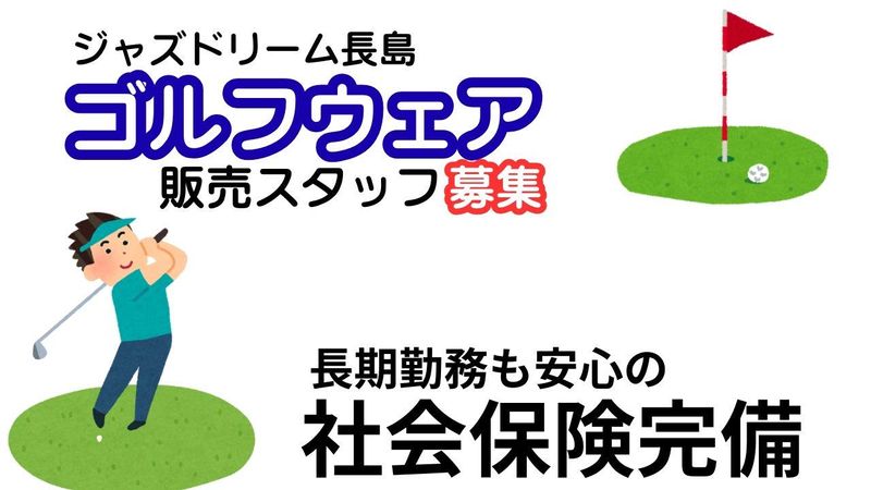 求めている人材 ◇販売のお仕事に興味のある方、大歓迎◇ ≪販売経験不問!年齢性別不問!≫ 学生さん、ブランクのある方、シニアの方、 ご応募OK◎ 【こんな方のご応募お待ちしております】 〇元気にご挨拶ができる方 〇おしゃべりが好きな方 〇体を動かすことが好きな方 〇ジャズドリーム長島が好きな方 〇ゴルフが好きな方 〇趣味を活かしたい方 〇お買い物が好きな方 〇通勤時間を短くしたい方 〇残業したくない方 〇バックヤードの仕事が好きな方 〇レジ打ちが好きな方 〇ディスプレイを作るのが好きな方 〇学校帰りに働きたい方 〇週末だけ働きたい方 〇テスト期間は休みたい方 〇3月までの勤務したい方 〇長期勤務を希望している方 〇友達と一緒に働きたい方 などなど** ◎理想の勤務ができるようしっかりサポートしますので まずはお話を聞かせてください(^^)