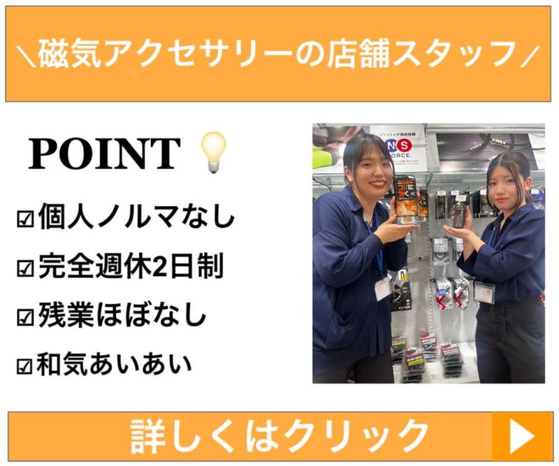 磁気アクセサリーの店舗スタッフ(未経験OK)
