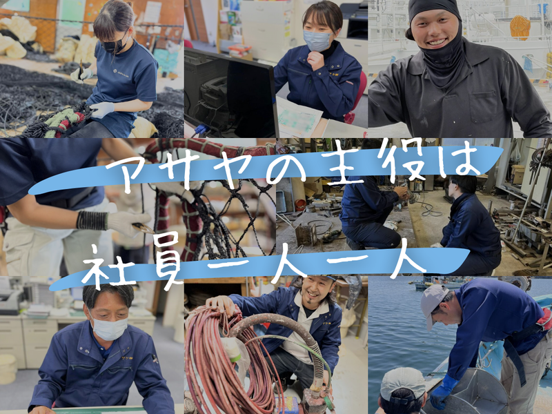 仕事内容 ■漁業資材のルート配送&営業サポート 【具体的には】 *資材・商品の配送 *営業サポート(発注)業務 *部品メンテナンスなどをお願いしてきます。 お客様は漁協組合や船主、漁師さん等、1日の平均訪問件数は3~7件です。 ロープ・網・カゴなどを始め小さいものは釣り針から、大きいもので船体に取りつけるような漁船機械などを幅広く取り扱っていますよ。 <ゆっくりじっくりで大丈夫です> 入社後まずは先輩と同行しながら、漁具などの商品やお客様に顔を覚えて貰う事からスタート。 定期的に配送するため、雑談や獲れたお魚のおすそ分けを頂いたり、良好な関係性が生まれやすいのも働きやすさのひとつです! 半年~1年くらいで1人で発注や仕事の流れを覚える事ができますよ。 数年間は先輩とペアとなり、お客様の場所・特徴・仕事や今困っていること等を 「見て・聞いて・肌で感じる機会」を多く持ってほしいと考えています。 顧客を1人で担当できるようになるまでは約3~5年程。顧客を任されたら、「自分がこの浜を担当している。守っている」そんな責任感を持ち、お客様とずっと長いお付き合いをしてきた「アサヤの信頼」をぜひ引き継いでいってください。 ■初めての就職・転職の方も安心の制度! 当社では入社後も安心して腹立いて頂けるようなフォロー体制があります。 ・心構え研修 ※入社後すぐ、アサヤのビジョンや大切にしていること、大切にして欲しいことをお伝えするとともに、これからお仕事をする上で目標を持って取り組めるようお互いを理解する場をセットしてます。 ・ナナメ面談の実施 ※直属の上司とは別の方と、ざっくばらんに会話する場があります。 仕事での悩みはもちろん、プライベートの不安なども相談もしている社員もいます。 直属の上司には言いにくい悩みなどを話すことで、前向きになったり、自分の成長を感じ取れたりできる機会になっています。