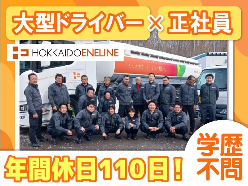 仕事内容 / 大型免許があれば大歓迎!面接1回でスムーズに転職可能! 長距離配送無し×手積み・手降ろしナシで負担も少なめです! \ ENEOSの運営などエネルギー事業を行う「北海道エネルギー株式会社」のグループ企業『北海道エネライン株式会社』で、大型タンクローリードライバーを大募集! 北海道での生活に絶対に欠かせないガソリンや灯油の配送を担う物流企業のため、非常に高い需要と安定性を誇っています。 <この求人のポイント!> [1]面接1回のみ>応募から面接、内定までスピーディーに対応します! [2]学歴/経験/転職回数不問>完全未経験から入社した先輩も多数活躍中! [3]賞与年2回(前年実績3~4ヶ月分)有>他にも燃料・住宅・養育支援手当など豊富な各種手当をご用意! [4]年間休日110日>週休2日(月9日~10日休)で休みも充実!有給休暇もあり! [5]転勤無し>転居を伴う転勤が無いため、住み慣れた街で働けます! [6]福利厚生・各種手当も充実しています! 【お任せするお仕事内容は・・・】 大型タンクローリーを運転して札幌近郊の「ENEOS」のガソリンスタンドへ、ガソリンを輸送する仕事です。 難しい業務は無く、丁寧な研修もあるので、大型車の乗務経験が浅い方はもちろん、タンクローリーを運転するのが初めての方も安心です! >再配達など面倒なことは無し! 個人宅や企業を訪問する仕事では無く、グループ企業が運営するガソリンスタンドを回るため、目的地に到着次第、作業が進められます。 そのため、再配達はもちろん、お客様対応によるトラブルなども一切無し!運転と自分の作業に集中できるお仕事です。