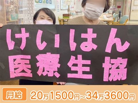 けいはん医療生活協同組合とは 大阪府寝屋川市、門真市、守口市を中心に、医療・介護・福祉サービスを提供する生活協同組合です。 組合員の出資と参加によって運営され、3つの診療所と23の介護事業所や施設と連携し、医療と介護の両面から地域住民の健康をサポートしています。 働きやすい職場環境 当組合では人間関係が原因での離職は少なく、一度退職した方の復職(出戻り)も珍しくありません。 生協組合の理念としている『助け合いの精神』が根付いており、利用者様だけでなく働く仲間に対しても優しい職員が多いです。 また、職員の約8割は女性で、自身も子育中の管理者も多いので、働くママさんパパさんに対しての理解があります。(男性育休取得実績あり!)。短時間勤務の相談や急なお休みがあっても、当たり前のこととして受け取ってくれるような雰囲気があります。 子育て以外にも、親の介護などそれぞれの事情にあわせて柔軟な働き方が可能です。