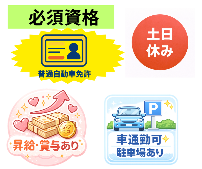 資格 【必須】 ●59歳以下(定年が60歳のため) ●高卒以上 ●普通自動車運転免許(AT限定可) 【歓迎】 ・自動車部品製造業管理業 ・ISO9001/12001経験者優遇 ・Excel・Wordができる方優遇 未経験者歓迎 経験不問 経験不要 既卒・第二新卒歓迎 ブランクOK