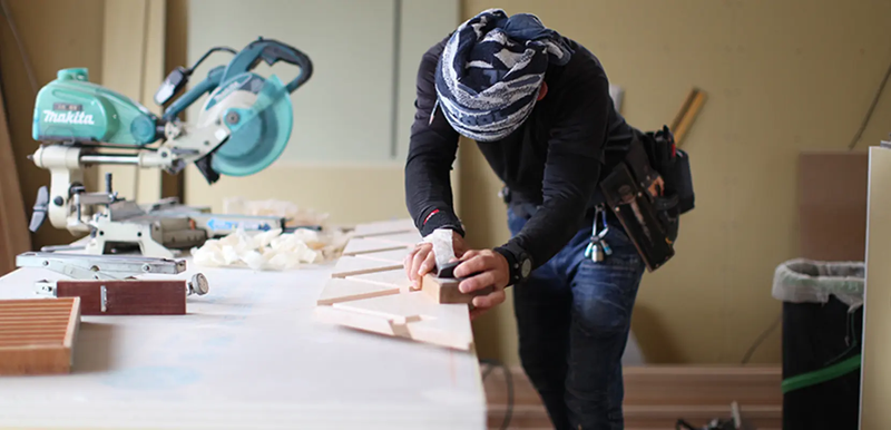 職場環境 当社は現在20代5人、30代3人、40代4人の計12人が在籍。 設計・施工・営業・職人が近く、 施工管理も意見が伝えやすい環境です。 オフィスは、2024年に元居酒屋を リノベーションした新スタジオ。 無垢の床や漆喰の壁に囲まれた快適な職場です。 喫煙所:喫煙所あり(屋外)