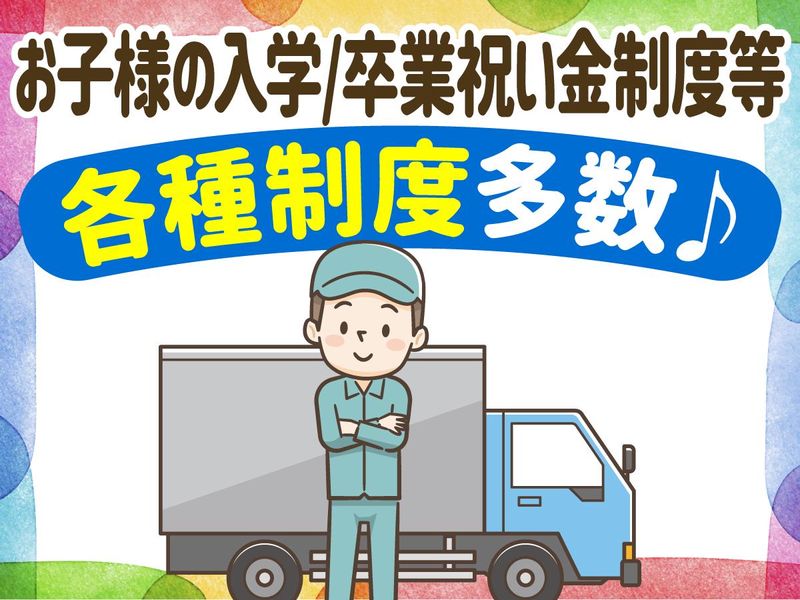仕事内容 ●普通免許/準中型免許があればOK! ●固定ルート配送なので未経験でも安心! ●夜間配送で渋滞ナシ♪ストレスフリー! 【お仕事内容】 2tトラックでの夜間固定ルート配送を お任せします! ■具体的には: ・大手電機メーカーの電材の配送 ・大手家電量販店の産業廃棄物などの収集運搬(段ボールや発泡スチロールなど) パワーゲート付なので、 重い荷物の手積み手降ろしは ほとんどありません◎ 廃棄物といっても臭いなどもほぼなく、 体力の負担も少なめです◎ ■配送エリア: 兵庫県内の一定エリア ■配送件数: 1日10件程度※ルートによる \準中型免許があればOK!/ \ドライバー未経験者多数活躍中!/ ――――――――――――――――――― ★入社後は先輩の同行あり! 初めの1週間~1ヶ月程度は同行があるので ルートを覚えながら、徐々に慣れていけます! ★渋滞が少ない時間帯で安心! 「夜間ドライバ―は初めて」という方も 焦らず落ち着いて運転できます◎ \創業40年!安定経営で安心の職場/ \「安全性優良認定事業所」認定!/ ――――――――――――――――――― 大手家電メーカーや鉄鋼メーカーの 製品輸送を事業としている会社です。 ドライバ―の方が安心して 運転できる環境をご用意しています。 ・全社で車両70台保有 ・バックアイモニター、ドライブレコーダー、デジタコなどの設置あり