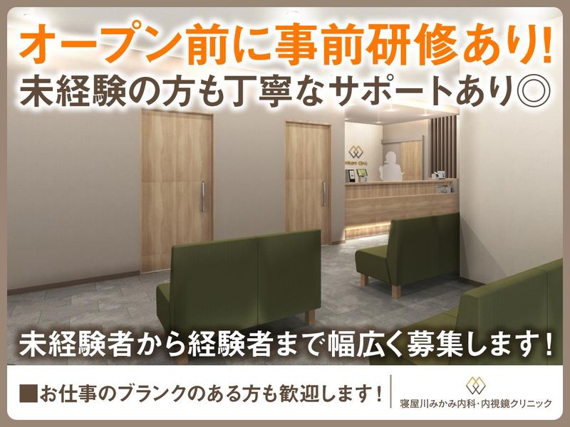 仕事内容 2026年7月に、内科・内視鏡内科・美容皮膚科クリニックが新たに寝屋川市早子町に新規開院予定! メディカルクラーク(シュライバー)を大募集!経験を活かして活躍できます!ブランクある方もOK! 子育てなどで少ししか働けない方でも、柔軟なシフトで無理なく働くことができます! 家庭やプライベートの両立も可能です! =================== ◎オープニングスタッフ大募集! みんな一緒のスタートで働きやすいですよ! 丁寧なサポートもあるので安心してスタートが可能です! =================== <具体的には、> 内科・内視鏡クリニックで、医師の診療が円滑に進むよう電子カルテの入力を中心にサポートしていただくお仕事です。 まずは検査室の所見入力をお願いします。文書作成の補助など、医療現場を裏方から支えるポジションです! <具体的には> ●電子カルテの入力(問診内容・処方・検査オーダー補助) ●紹介状・診断書・文書作成の下書き ●医師の診療サポート(記録代行) ※医療事務作業補助やカルテ入力の経験者歓迎! ※ブラインドタッチできる方 ※医療事務経験者優遇! =================== オープン前に1週間ほど研修もあるので、ブランクが長い方でも不安なくスタートしていただけます! オープン準備中につき、シフトや働き方はこれから決めていきます。 当院のスタッフとして新たな一歩を踏み出してみませんか! =================== 当院は、シフト相談も可能なので家事・子育て・介護などとも両立しやすいと思います。 私生活と両立しやすい働き方ができるようにシフトも組んでいきますので相談して下さい! 「週3日、扶養内の範囲で働きたい!」「子どもたちの手が離れたからフル勤務で働きたい!」など今ならどの時間帯の希望も受付可能です! =================== <院長より> 当クリニックは、 ・待ち時間の短縮 ・正確な診断 ・患者様の不安を最短で解消すること を大切にしています。 そのため、診察前に必要な検査を行う流れを採用しています。 診察前に検査を行う理由は、従来の流れでは来院回数が増え、不安な時間が長くなります。 当院では必要な検査を先に行うことで、1回の来院で診断と方針が決まりやすくなるためです。 また、待ち時間の短縮にも力を入れていきます。 下記を重要項目として取り組んでいく予定です。 ・導線管理 ・検査案内 ・状況に応じた声かけ ・遅延時の説明 ・診察室・検査室との連携 当院の理念に共感し、患者様に安心を届け、チームとして前向きに取り組める方を歓迎します!