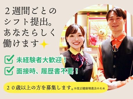 資格 - 20歳以上(受動喫煙対策の為) 未経験者歓迎(経験不問) 無資格OK(資格不問) - *20代・30代活躍中 *女性活躍中 *主夫・主婦パート活躍中 *大学生歓迎 *第二新卒歓迎 *フリーター歓迎 *ブランク歓迎 【こんな方歓迎】 *アミューズメント業界に興味がある方 *パチンコが好きな方 *高収入を稼ぎたい方 *ハローワークで求職中の方 他にも… ホテルフロント、フロントスタッフ、パチンコ店スタッフの 経験をお持ちの方は活かせますよ! もちろん未経験者大歓迎! 人と話すのが好きな方、誰かを笑顔にすることに やりがいを感じる方にぴったりの職場です! お客様とのちょっとした会話を楽しみ、 リピーターの方に名前を覚えてもらえるような、 温かい関係を築けることに喜びを感じる方に向いています!