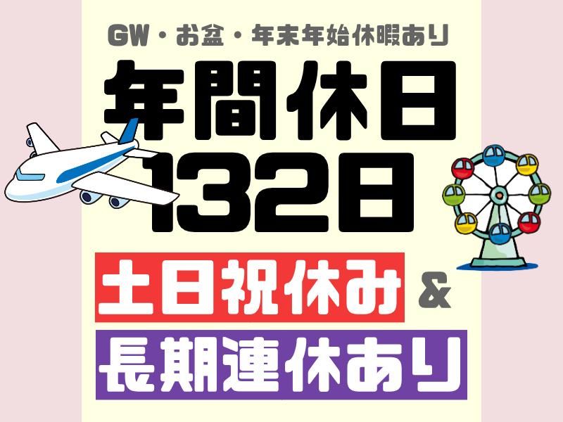 休日休暇 土日祝休み(完全週休2日制) ※工場カレンダーあり *GW、お盆、年末年始など長期休暇あり *年間休日132日 *有給休暇あり