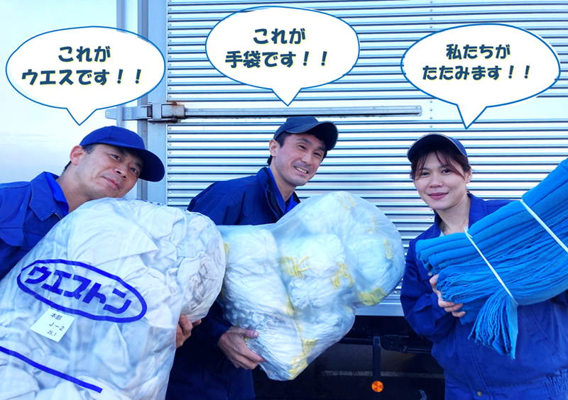 タオルや軍手などを乾燥させたり、たたんだりする軽作業