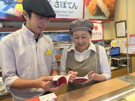 【保険制度】 雇用保険、労災保険、健康保険、厚生年金 待遇・福利厚生 【福利厚生】 ■研修あり(1~3ヶ月程度) …研修期間はマニュアル終了まで。進度や出勤状況によって研修期間が短くなることも! 店長や先輩スタッフが丁寧にお教えしますので未経験の方もご安心ください。 ■その他報奨あり …店舗の業績によって時給に手当が付きます。 ■社員割引制度あり …アルバイト・パートの日はさぼてん自慢のお惣菜やお弁当などが30%OFFでお得に購入できます。 夕食のおかずや、ご家族へのお土産に、スタッフから大好評です。 ■自転車通勤可 ■通信教育制度・資格取得支援制度 …さぼてんならアルバイト・パートしながら資格も取れちゃう◎ word・excelなどのビジネススキル講座、語学講座などから 食に関する講座まで、幅広い通信教育講座があります。 受講料が最大7割サポートされます(規定あり)! ■定年制度(定年65歳)