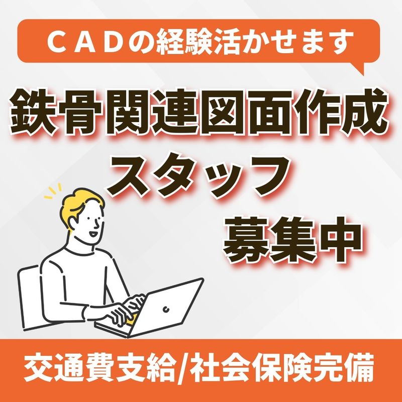 資格・経験 ・建築鉄骨造CAD作業の実務経験 ・30代~50歳代の男性・女性スタッフ活躍中