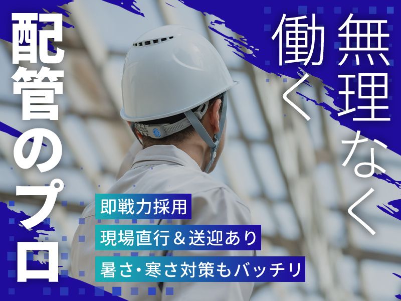 仕事内容 ✅️自宅から現場まで送迎あり! \億劫な通勤がラクラクです/ <求人のポイント> 【1】即戦力採用 【2】現場直行&送迎あり 【3】暑さ・寒さ対策もバッチリ 【4】残業ほぼなし(定時退社OK) 【5】昇給&賞与で頑張りを還元! <仕事内容> ①各プラント工事内での 配管制作・取付、付帯工事 ②ビル、病院などの設備工事 ③工場での配管、サポート架台内作 (グラインダーによる開先加工、 寸法切り、TIG溶接による仮止めなど)