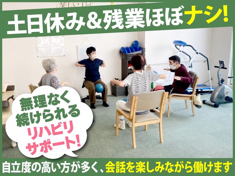 仕事内容 ==================== “介護って大変そう…”、そんなイメージを お持ちの方へ ==================== ▽ ▽ ▽ げんきリハは、重たい介助はほとんどなく 会話やサポートが中心のお仕事なんです♪ ここで働けば一般的な介護のイメージを 変えていただけるはず! 具体的には、エアロバイクやマシンなどを 用いたトレーニングや体操の指導、 利用者様の体のメンテナンスがメインです! 具体的には、ボールやバランスディスク、 平行棒、TRXなどを使ったトレーニング を行います。 どれも使い方は簡単なので、すぐに 慣れてもらえると思います! もちろん始めは丁寧に使い方を お教えするのでご安心ください! 運動が得意でなくても、体を動かすことが 好きであればOK! 利用者様と楽しくおしゃべりしながら 取り組んでいます。 お話が好きな方にはうってつけの 明るく笑顔の絶えない職場です! 先輩スタッフのサポートもあるので 未経験の方も安心! ▽ ▽ ▽ どちらかというとインストラクターや トレーナーといった方が近いかもしれません 職場見学も大歓迎なので、興味のある方は ぜひのぞいてみてください! <げんきリハの1日の流れの例> 〇午前の部 9:00~ 利用者様到着、健康チェック 9:15~ 集団体操、レクリエーション 10:00~ ベッド上でのリハビリ、 道具を使ってのトレーニング 11:20~ 個別機能訓練 12:00~ 健康チェック、お見送り 〇午後の部 13:30~ 利用者様到着、健康チェック 13:45~ 集団体操、レクリエーション 14:30~ ベッド上でのリハビリ 15:30~ 個別機能訓練 道具を使ってのトレーニング 16:30~ 健康チェック、お見送り 17:30 終業 <げんきリハ西宮について> ★要支援・要介護度が低めの利用者様が中心  ̄ ̄ ̄ ̄ ̄ ̄ ̄ ̄ ̄ ̄ ̄ ̄ ̄ ̄ ̄ ̄ ̄ ̄ ̄ ̄ 元気で自立度の高い方が多く、 コミュニケーションを楽しみながら 働ける環境です◎ ★スタッフも利用者様も明るく元気な職場♪  ̄ ̄ ̄ ̄ ̄ ̄ ̄ ̄ ̄ ̄ ̄ ̄ ̄ ̄ ̄ ̄ ̄ ̄ ̄ ̄ 和やかな雰囲気で、初めての方でも すぐに馴染めます! ★入浴・食事介助なし!  ̄ ̄ ̄ ̄ ̄ ̄ ̄ ̄ ̄ ̄ ̄ 身体的な負担が少なく、介護のお仕事が 初めての方やブランクがある方も安心◎ ★交通費は月1万5000円まで支給!  ̄ ̄ ̄ ̄ ̄ ̄ ̄ ̄ ̄ ̄ ̄ ̄ ̄ ̄ ̄ ̄ 通勤の負担も軽減されるので長く働きやすい♪ ★少人数制&午前・午後の2部制!  ̄ ̄ ̄ ̄ ̄ ̄ ̄ ̄ ̄ ̄ ̄ ̄ ̄ ̄ ̄ ̄ 一人ひとりの利用者様としっかり向き合える 環境です◎バタバタしすぎず、 落ち着いて働けます! ★主婦(夫)さん多数活躍中!  ̄ ̄ ̄ ̄ ̄ ̄ ̄ ̄ ̄ ̄ ̄ ̄ ̄ ̄ 家庭や育児と両立しながら働いている方も 多く、急なお休みやシフト相談にも 柔軟に対応しています♪ ★ブランクOK&Wワーク歓迎!  ̄ ̄ ̄ ̄ ̄ ̄ ̄ ̄ ̄ ̄ ̄ ̄ ̄ ̄ ̄ 「久しぶりの仕事復帰」や「掛け持ちで働きたい」方も大歓迎◎