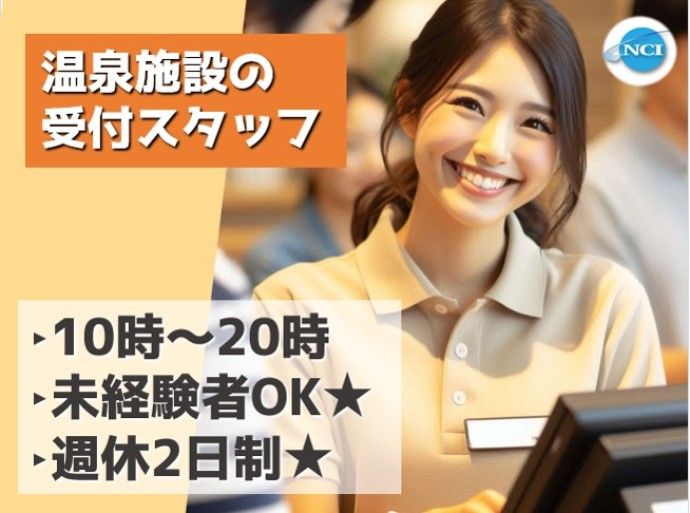 仕事内容 【フロント受付】 ◎温泉施設での受付業務をお願いします! ・日帰り入浴、宿泊利用の確認 ・身分証明書の確認 ・軽食コーナーのご案内 ・脱衣所の整理整頓 ===================== ◎ココ見て!求人の魅力◎ ===================== ■安定した経営基盤企業で長期活躍! ■研修+マニュアル完備でしっかりフォロー! ■落ち着いた雰囲気でゆっくりスキルアップ! ■お給料週払いも対応OK! =================== ◎こんな方にオススメ◎ =================== ■接客経験を活かしたい! ■人と話すことが好き! ■やりがいのある仕事がいい! ■今スグ仕事を始めたい! ====ここもチェック!==== ◇フリーター歓迎 ◇未経験歓迎 ◇経験者歓迎 ◇U・Iターン歓迎 ◇第二新卒歓迎 ◇ブランクOK ◇即日勤務OK ◇週4以上OK ◇家庭都合休OK ◇友達と応募OK ◇長期 ◇シフト制 ◇学歴不問 ◇服装自由 ◇40代以上応募可 ◇残業月20時間以下 ==================
