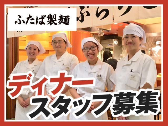 タイトル 【夜のスキマ時間でOK】学生さん活躍中!友達と応募も◎まかない有!週2日~/1日3h~OK◎高時給1300円~! 職種 キッチン・ホールスタッフ(ディナータイム) 雇用形態 アルバイト・パート 仕事内容 ◆◇「店内製麺」のふたば製麺で働いてみませんか? 揚げたての天ぷらと、本格讃岐うどんが自慢のお店。 国産小麦と水と塩だけを使い、店内で毎日打った麺や、揚げたてのアツアツ天ぷらがお客さまからも大好評。 ◆◇活気と季節や旬のものを感じられる環境! たくさんのお客さまにご利用いただいているふたば製麺では、 オープンキッチンの店内で、スタッフがお客さまの目の前で調理します。 オペレーションがしっかりしているので、お客さまとのやりとりはスムーズ! 季節限定のメニューがあって「旬」の味に触れることができます! ◆◇未経験・ブランク有でも充実感!嬉しいまかないも! 初バイト・未経験OK! トッピングや湯煎、うどんの盛り付けなど、 ステップごとの丁寧なトレーニング完備! 1つ1つできることが増えていく達成感があります。 1日やりきった時には充実感がありますよ◎ 最新の厨房機器や食洗機を導入しているので、体力的な負担も軽減。 授業とサークルの合間を活用できる「タイパが良いバイト」。 まかないは1食120円で食べられて、食費を抑えたい学生さんに嬉しい! ※個人差あり ………………………… ●お客さまをお迎え お客さまを笑顔と元気な挨拶でお迎えし、店全体を明るい雰囲気にします。 ●うどん、天ぷらの調理 定番や期間限定メニューのうどんを茹でる作業や盛り付け、 野菜・えび・かき揚げなどを専用の器具で揚げます。 レシピ通りに調理・盛り付けて、できたてをお客さまにお渡しします。 ●注文受付/配膳 お客さまをお席へご案内し、メニューやおすすめ料理を伝えながら、ご注文をお伺い。できたての料理をお席までお持ちします! お渡しをするときに、「つゆが熱いので気をつけてお持ちくださいね」などちょっとした声掛けや気遣いができるとGOOD! ●レジ業務 タッチパネル式だから操作も簡単♪お客さまの「ありがとう」が直接聞けるのも魅力です。 ※券売機のためレジ業務がない店舗もございます ●洗い場/店内清掃 食洗機を積極的に活用!手荒れを防いで効率よく作業◎ お客さまとスタッフが気持ちよく過ごしていただくために店をキレイに。 忙しい時間帯は、薬味やお箸・おしぼりの残量などもまめにチェックして、補充をします。 ☆☆☆ふたば製麺の【3つの推しポイント】 1.高時給1300円&働きやすさピカイチ! 「授業終わりにサクッと稼ぎたい」「土日だけ入りたい」など ライフスタイルに合わせて働けます!短時間の勤務もOK◎ ★22時以降は時給25%UP(深夜割増有)でさらに稼げる! ★週2日~、1日3h~OK!学業やサークル、遊びに合わせて組めます。 ★1週間毎の希望シフト制!テストや長期休暇の予定も立てやすい! ★給与は1分単位で計算!頑張った分はしっかり還元。 2. スタッフ想いの嬉しい待遇が満載! 1食120円で食べられる絶品まかない有! 勤務前にもおいしいうどんが食べられる! ★交通費月5万円まで支給。 ★制服貸与。 3.幅広い年代が活躍!温かい協力体制! 10代・20代・30代・40代・50代・60代と幅広い年代のスタッフが活躍中! 学生さん、パート主婦(夫)さん、フリーターさん、中高年の方まで、 様々な仲間が協力し合い、チームワークを重視して、学び合える環境が魅力です。 ★主婦パートさん、大学生さん、シニアの方も活躍中!