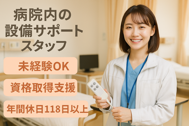 仕事内容 【注目ポイントはコチラ!】 〇 資格不問/学歴不問で応募OK 〇 残業ほぼなし(月5時間以内)でプライベート充実 〇 資格取得支援で入社後も成長できる職場環境 【仕事内容】 ・病院内にある設備の点検 ・電気/空調などの簡単な整備 ・報告書の作成 【このお仕事の魅力】 〇 未経験スタート歓迎でOJTや研修が充実 〇 病院を裏側から支えるお仕事 〇 プライベートとの両立がしやすいシフト休み 【担当者コメント】 ご不安あれば面接でお話ください! 仕事内容、研修体制、待遇面など気になる点はすべて面接時に回答いたします。 お気軽にお問い合わせ・ご応募くださいませ!